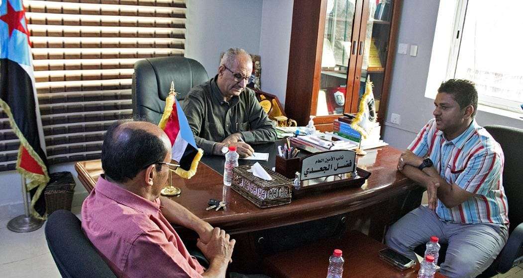 التقى الأستاذ فضل محمد الجعدي عضو هيئة الرئاسة نائب الأمين العام للأمانة العامة لهيئة رئاسة المجلس الانتقالي الجنوبي، اليوم الأحد، في مكتبه بمقر الأمانة العامة بالعاصمة عدن، الدكتور وسام معاوية مدير عام مديرية الشيخ عثمان. وخلال اللقاء استمع إلى شرح مفصل حول أبرز الإنجازات التي حققتها السلطة المحلية في الشيخ عثمان، وكذا عن أبرز الصعوبات التي تواجه سير عملها. وأشاد الجعدي بالجهود المبذولة من قبل السلطة المحلية في مديرية الشيخ عثمان، مؤكداً أن المجلس الانتقالي الجنوبي سيكون الى جانب السلطة المحلية في اي عمل تقوم به سيسهم في تطوير المديرية. حضر اللقاء الاستاذ عبدالرحمن العطاس نائب رئيس الدائرة الجماهيرية في الأمانة العامة.