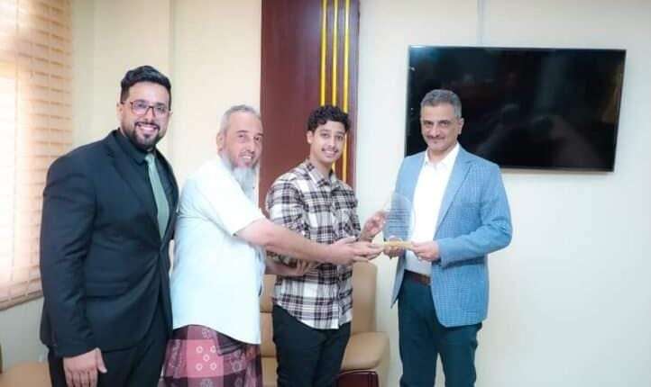 وزير الدولة المحافظ لملس يكرم الطالب علي نصر لتفوقه وحصوله على المركز الأول ويؤكد اهتمامه ودعمه بذوي الهمم.