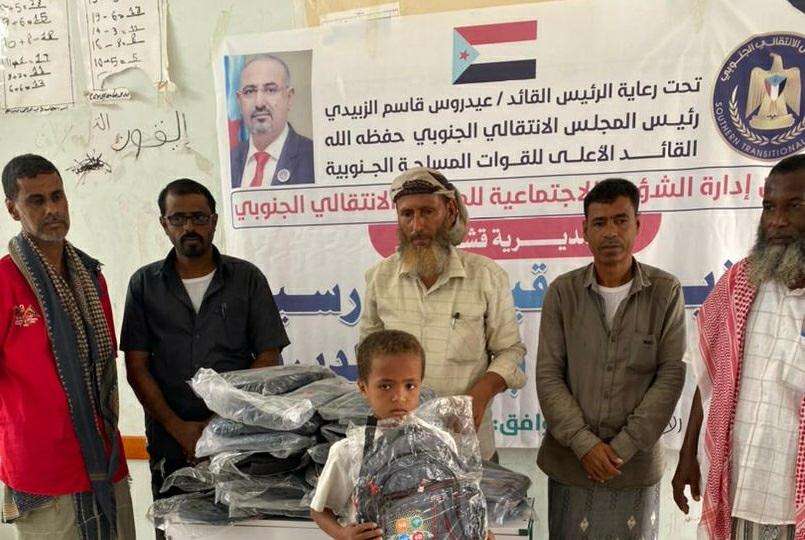 انتقالي المهرة يدشن توزيع الحقائب المدرسية على الأيتام والطلاب الأكثر احتياجا.