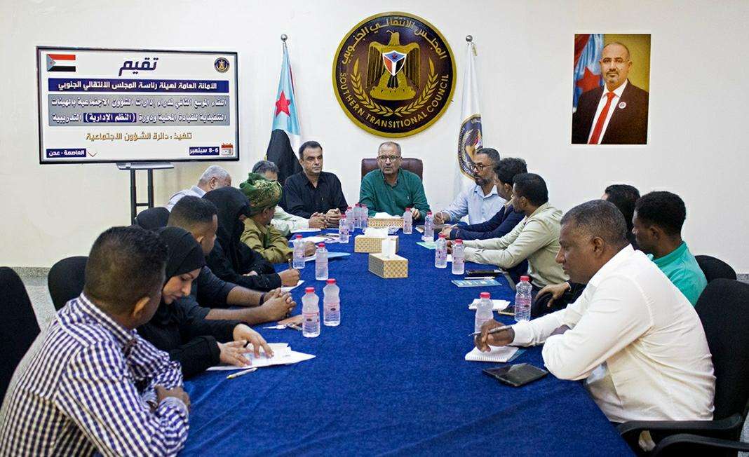 الأمانة العامة تعقد لقاءً تشاورياً مع مديري إدارات الشؤون الاجتماعية في تنفيذيات الانتقالي بالمحافظات.