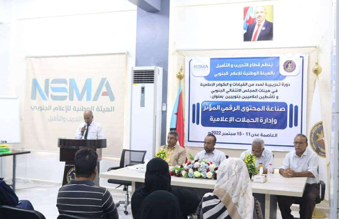 قطاع التدريب والتأهيل يدشن دورة تدريبية في "صناعة المحتوى الرقمي وإدارة الحملات الإعلامية" لإعلاميي هيئات المجلس الانتقالي.