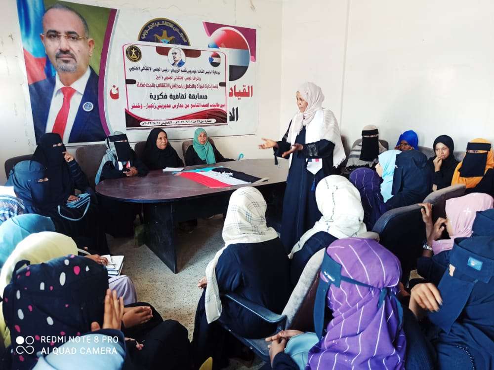 إدارة المرأة والطفل بانتقالي ابين تختتم المسابقة الثقافية والفكرية لطالبات الصف التاسع بمديريتي زنجبار وخنفر.