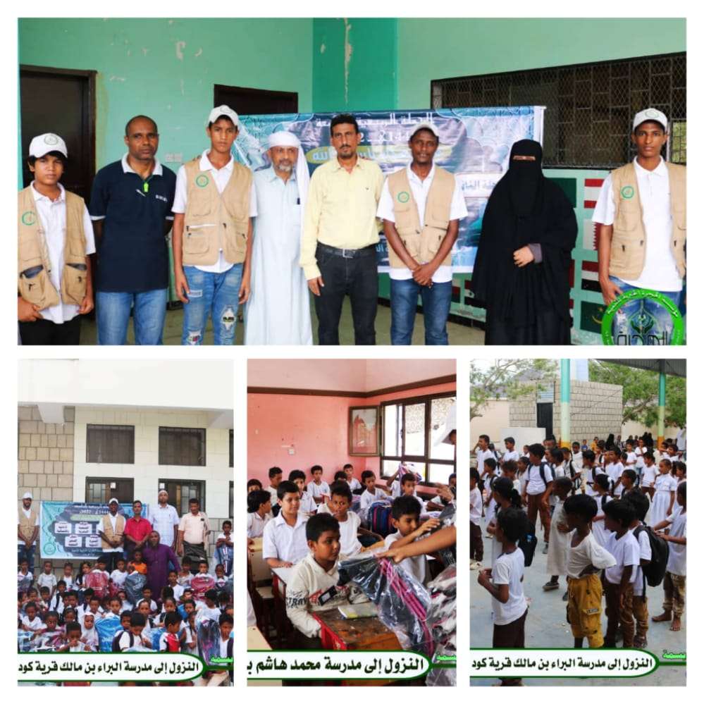 تواصلاً لنزولاتها الخيرية والإنسانية ضمن أعمال المرحلة الثانية من الحملة الربيعية التاسعة "على نهجك يارسول الله"، نفذت مؤسسة الهجرة الخيرية للتنمية بالعاصمة عدن الأسبوع الماضي آخر النزولات لطلاب المدارس والمراكز الاجتماعية لتوزيع الملابس والقاء الكلمات التذكيرية والتوجيهية. حيث تم الوصول إلى مدرسة البراء بن مالك بقرية كود قرو بمنطقة صلاح الدين بمديرية البريقة ، تلاه نزولاً آخر لمدرسة محمد هاشم بمديرية المنصورة، واستفاد من توزيع الملابس بتلك المدارس 104 طالباً و 16 مدرساً بمدرسة البراء بن مالك، و 360 طالباً و 60 مدرساً بمدرسة محمد هاشم. وتم التوزيع بعد التنسيق المسبق مع كلا الإدارتين بتلك المدارس، كما أقيم طابوراً لطلاب مدرسة البراء بن مالك تم تحضير فقراته من قبل إدارة المؤسسة، بدأ بالقران الكريم، وكلمة للأستاذ علي باحميش - نيابة عن المؤسسة - واناشيد مدائحية في حب الحبيب محمد صلى الله عليه وسلم للمنشد محمود ، وكلمة لمدير المدرسة، وأخرىه لرئيس اللجنة المجتمعية بقرية كود قرو الأستاذ علي دهمس.