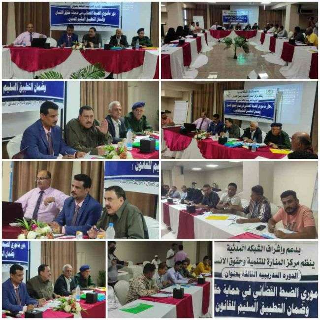 وتطرق / يحي المحجري رئيس مركز المنارة للتنمية وحقوق الانسان الى نشاط المركز والفعاليات التي نظمها في هذا المجال والتي تعد هذه الدورة الثالثة والهادفة.تدريب المختصين من مأموري الضبط القضائي في حماية حقوق الانسان وضمان التطبيق السليم للقانون .