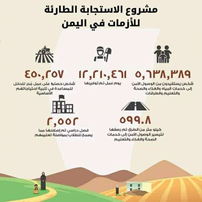 وتابع تغريدته عبر حسابه الرسمي: إلى توفير فرص عمل قصيرة الأجل وتحسين الوصول إلى خدمات أساسية مختارة للفئات الأكثر ضعفاً، والحفاظ على القدرات المحلية لتقديم الخدمات.