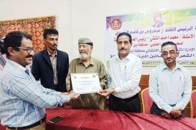 انتقالي أبين يُكرم عددًا من الشعراء والفنانين بالمحافظة