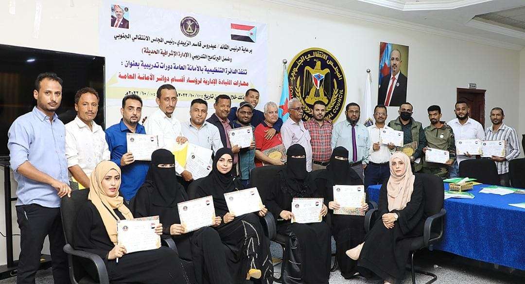 اختتمت الدائرة التنظيمية في الأمانة العامة لهيئة رئاسة المجلس الانتقالي الجنوبي، اليوم الخميس، المرحلة الأولى من دوراتها التدريبية في "مهارات القيادة الإدارية" لرؤساء اقسام دوائر الأمانة. وتلقى المشاركون في المرحلة الأولى للدورات والتي تقام ضمن البرنامج التدريبي " الإدارة الإشرافية الحديثة" انواع وأنماط القيادة الإدارية وطرق ادارة الموارد البشرية والمادية والمالية وأساليب التخطيط والتنظيم والتوجيه والرقابة. وتهدف الدورة التي أقيمت تحت إشراف المهندس شكري عبدالحكيم رئيس قسم التدريب والتأهيل في الدائرة التنظيمية الى إكساب القادة الاداريين مميزات الجمع بين الإطار المعرفي والتطبيق العملي في مجالات الحوكمة والبناء المؤسسي لتحقيق الأهداف المنشودة بالكفاءة والفعالية اللازمة. وجرى في ختام الدورة التي استمرت لمدة 5 ايام توزيع الشهادات التقديرية على المشاركين في المرحلة الأولى، نظيراً للجهود التي بذلوها خلال الدورة التدريبية وتفاعلهم المتميز.