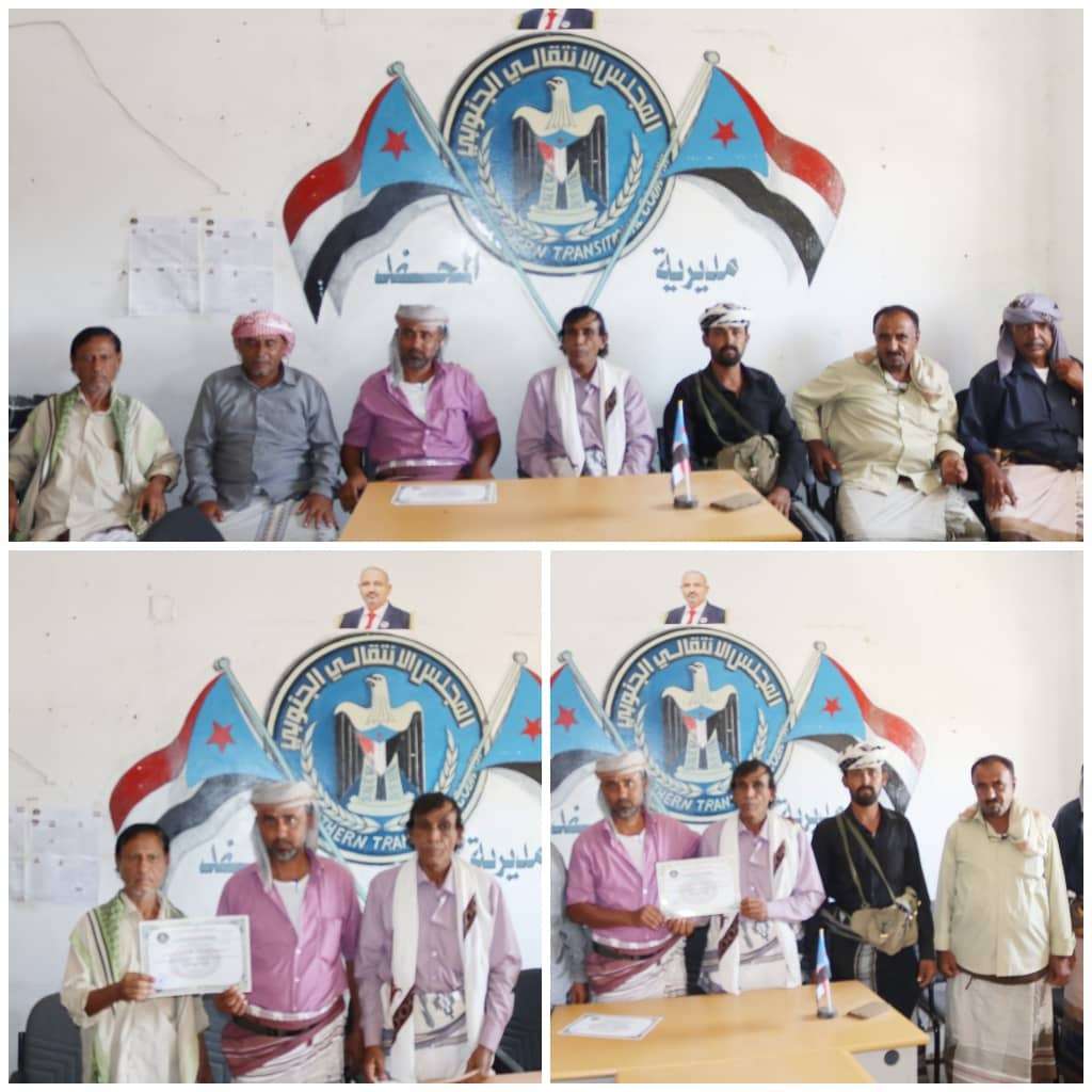 استلام وتسليم بين رئيس انتقالي المحفد الخلف والسلف بمقر الانتقالي بالمديرية.