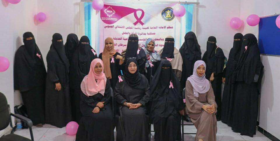 نظمت دائرة المرأة والطفل في الأمانة العامة لهيئة رئاسة المجلس الانتقالي الجنوبي، اليوم الأربعاء، ندوة توعوية حول الوقاية من سرطان الثدي، بالشراكة مع المؤسسة الاجتماعية الحديثة في العاصمة عدن. وفي مستهل الورشة ألقت الأستاذة ابتسام عقربي رئيس قسم تنمية المرأة في دائرة المرأة والطفل، كلمة رحبت فيها بالحاضرات، ناقلة لهن تحيات الرئيس القائد عيدروس الزُبيدي رئيس المجلس الانتقالي الجنوبي والأستاذ فضل محمد الجعدي نائب الأمين العام وقيادة دائرة المرأة والطفل. وقالت عقربي ان شهر اكتوبر هو شهر التوعية بسرطان الثدي في بلدان العالم كافة، مشيرة إلى أن سرطان الثدي من أكثر انواع السرطانات شيوعا بين النساء في بلدان العالم وثمة فرصة كبيرة في امكانية الشفاء منه في حالة الكشف المبكر عنه. ودعت ابتسام المشاركات إلى الاستفادة من المعلومات الهامة التي سيتلقينها حول مرض سرطان الثدي ومشاركة هذه المعلومات مع النساء في مجتمعهن، متمنية لهن التوفيق والنجاح في حياتهن العملية. من جانبها ألقت نادية باشراحيل المدير التنفيذي للمؤسسة كلمة شكرت فيها المجلس الانتقالي الجنوبي ممثلا بدائرة المرأة والطفل على تبنيه مثل هذه الأنشطة الهادفة التي تساهم في رفع توعية المرأة الجنوبية. وقدمت الدكتورة اشجان الفضلي مديرة البرامج والمشاريع في المؤسسة محاضرة عرفت المشاركات فيها على أهمية الدعم النفسي ورفع الحالة النفسية وبث الأمل لمريضات سرطان الثدي من خلال نشر قصص المتعافيات من سرطان الثدي، مما يساهم في تشجيعهن على الاستمرار في العلاج للوصول للشفاء. كما قدمت الدكتورة سمية عبدالله أحمد أخصائية نساء وولادة محاضرة توعوية للمشاركات حول مرض سرطان الثدي وكيفية اكتشافه والطرق التي تقي النساء منه، وكذا عدد من الأساليب التي تساعد النساء المصابات بهذا المرض ومساعدتهن في التغلب عليه.