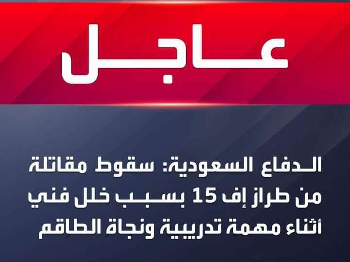 عاجل الدفاع السعودية: سقوط مقاتلة من طراز إف 15 بسبب خلل فني أثناء