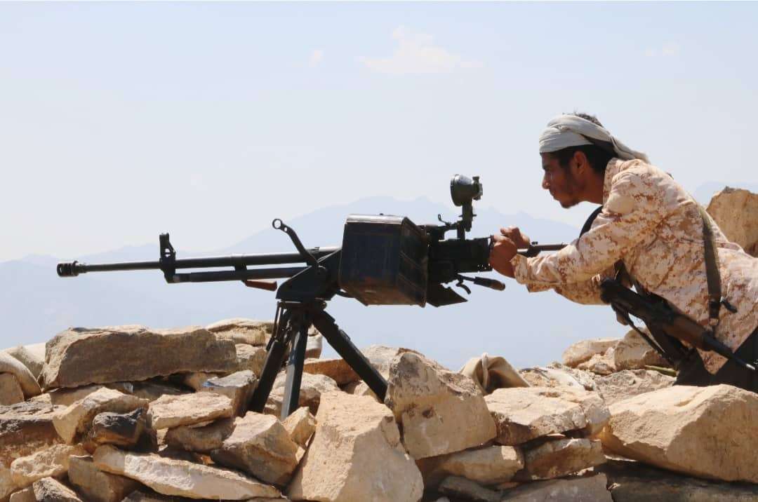 قوات اللواء الخامس دعم وإسناد تخمد مصادر نيران حوثية في جبهة كرش حمالة.