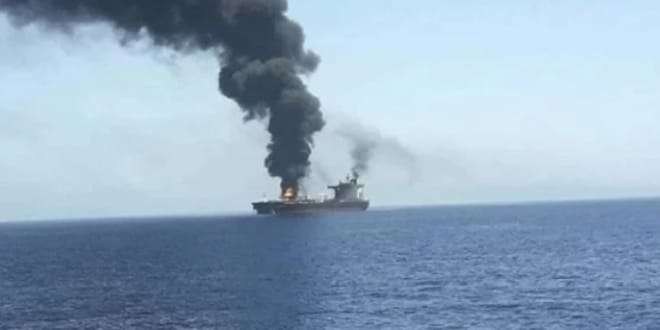 استهداف ناقلة نفط بطائرة مسيرة قبالة سواحل عمان.