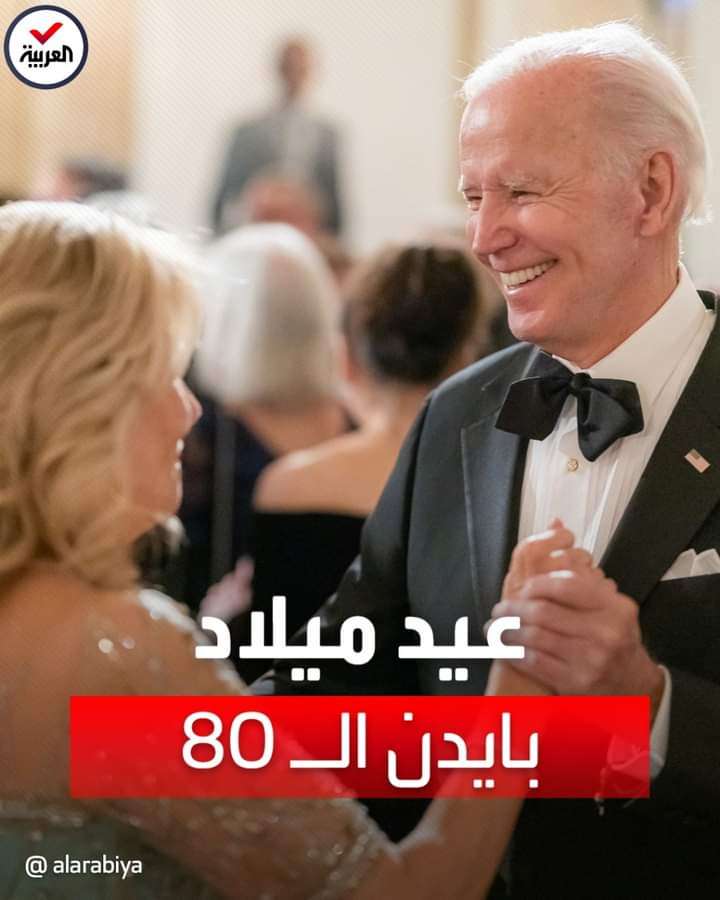 زوجة الرئيس الأميركي #جون_بايدن تهنئه بعيد ميلاده الثمانين عبر نشرها صورتين على حسابها معلقة: "لا يوجد أحد أفضل أن أرقص معه غيرك. عيد ميلاد سعيد جو! أحبك"، في حين لم ينشر البيت الأبيض أي بيان أو منشور بشأن عيد ميلاد الرئيس.