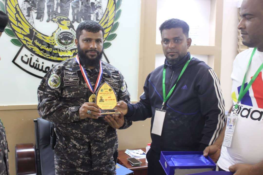 كرم اتحاد رفع الأثقال امس العميد أحمد مهدي بن عفيف قائد قوات حرس المنشآت الحكومية وذلك نظير جهوده ودعم لأنشطة الاتحاد. وقام المشرف الفني لاتحاد رفع الأثقال فواز محمد المقبلي ومدرب نادي الشعلة عمار فالت عياش بتكريم العميد أحمد بن عفيف بدرع وميدالية ذهبية اهداء من اتحاد رفع الأثقال. وعبر المقبلي وعياش عن شكرهم نيابة عن منتسبي اتحاد رفع الأثقال للعميد أحمد بن عفيف نظير دعم الكبير لأنشطة وفعاليات الاتحاد. من جانبه قدم العميد أحمد بن عفيف شكره لاتحاد رفع الأثقال مؤكدا مواصلة الدعم لأنشطة الاتحاد وتسهيل كافة المعوقات والصعوبات التي تواجه عمله. ويعد العميد أحمد مهدي بن عفيف قائد قوات حرس المنشآت الحكومية من أبرز القيادات الأمنية والعسكرية الداعمة للشباب والرياضيين ويرأس نادي حرس المنشآت واتحاد الفروسية والهجن وغيرها من الألعاب.