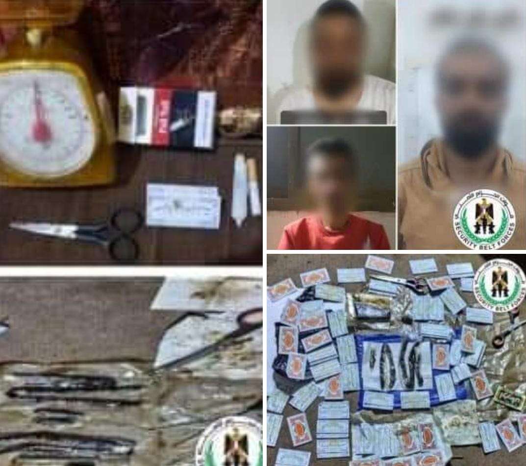 حزام عدن يضبط 3 متهمين بترويج المخدرات.