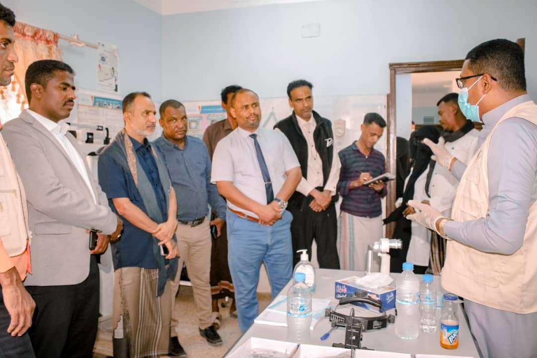 وكيل حضرموت لشؤون الشباب ومديري عام الصحة بالمحافظة وبروم ميفع يتفقدون سير مخيم طب العيون بالمديرية.