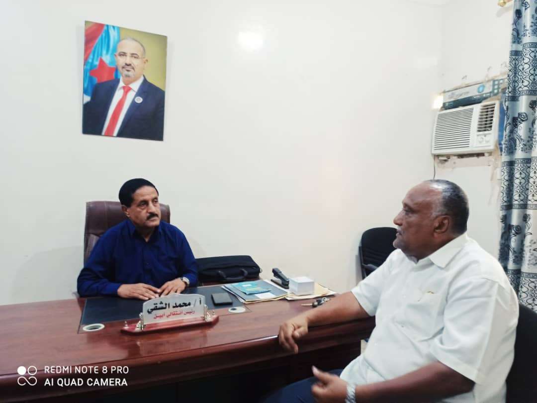 رئيس انتقالي أبين يناقش مع مدير مكتب الشباب والرياضة بالمحافظة مستوى الانجاز بملعب ساحة الشهداء.