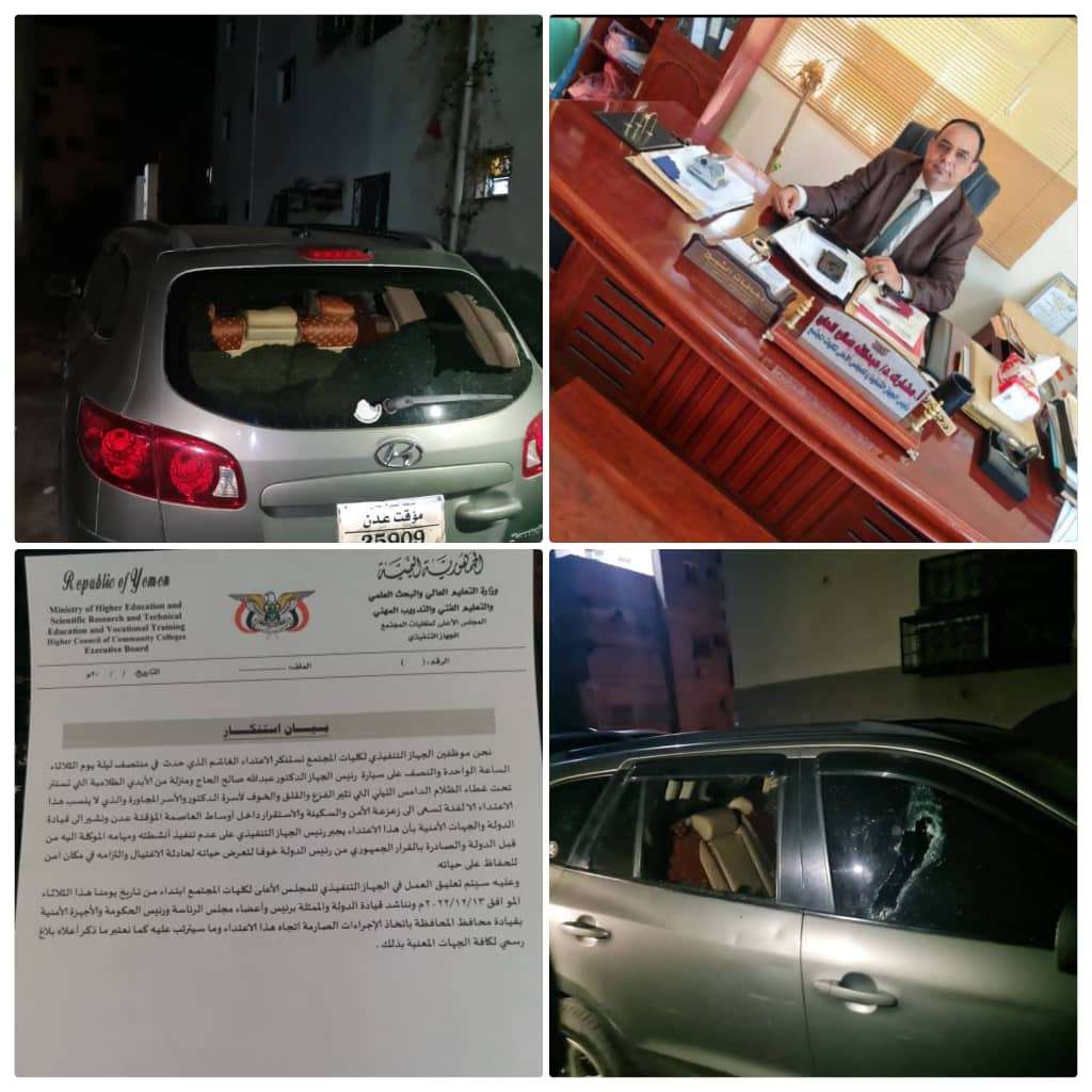 محاولة اغتيال رئيس الجهاز التنفيذي لكليات المجتمع بمدينة السلام بعدن.