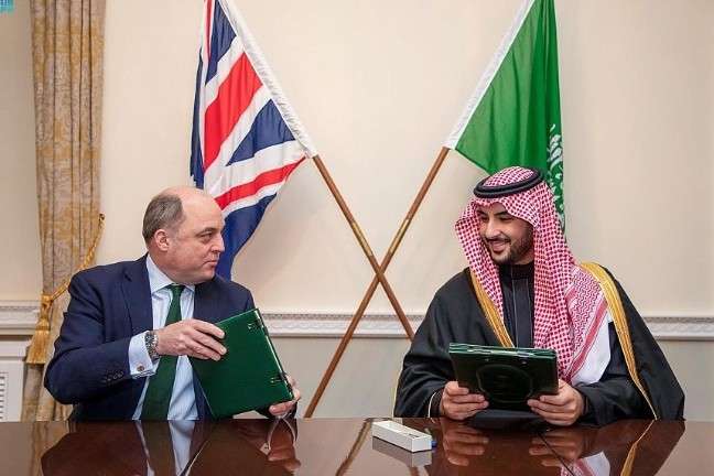 استقبل وزير الدفاع البريطاني بين والاس، يوم أمس (الثلاثاء)، الأمير خالد بن سلمان وزير الدفاع السعودي، في ساحة حرس الخيالة الملكي بالعاصمة البريطانية لندن، حيث أجريت له مراسم استقبال رسمية عزف خلالها السلام الملكي السعودي، واستعراض حرس الشرف. وعقد وزير الدفاع السعودي، اجتماعاً في مقر وزارة الدفاع البريطانية مع نظيره البريطاني جرى خلاله استعراض العلاقات الإستراتيجية والتاريخية بين البلدين الصديقين، وبحث أوجه التعاون الثنائي في المجال العسكري والدفاعي، بالإضافة إلى مناقشة عدد من القضايا ذات الاهتمام المُشترك، وتطورات الأوضاع على المستويين الإقليمي والدولي. كما وقع وزير الدفاع السعودي ونظيره البريطاني خطة التعاون الدفاعي، التي تهدف إلى تطوير قدرات وزارة الدفاع السعودية، وتوطين الصناعات العسكرية، وتعزيز الشراكة بين البلدين في المجال العسكري والدفاعي. وكان الأمير خالد بن سلمان قد وصل والوفد المرافق له يوم أمس إلى المملكة المتحدة في زيارة رسمية يلتقي خلالها بعددٍ من المسؤولين لبحث العلاقات بين البلدين الصديقين، وتعزيز التعاون الثنائي في المجال العسكري والدفاعي، ومناقشة القضايا ذات الاهتمام المشترك على المستويين الإقليمي والدولي.