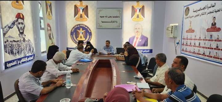 عقدت الهيئة التنفيدية للقيادة المحلية للمجلس الانتقالي الجنوبي في المنصورة بالعاصمة عدن ، اليوم، اجتماعها الدوري لشهر ديسمبر برئاسة الأستاذ وضاح الحريبي رئيس الهيئة بالمديرية. واستهل الاجتماع بقراءة محضر الاجتماع السابق واقراره. كما ناقش المجتمعون عدد من المواضيع الهامة وابرزها مستوى تنفيذ الانشطة والبرامج والفعاليات والتكليفات والمهام الموكلة خلال الفترة الماضية والصعوبات والعراقيل التي رافقت العمل وسبل معالجتها والحد منها . واستعرض المجتمعون خطة عمل ونشاط القيادة للعام القادم 2023م ،والذي تضمنت العديد من البرامج والانشطة الميدانية الهامة .