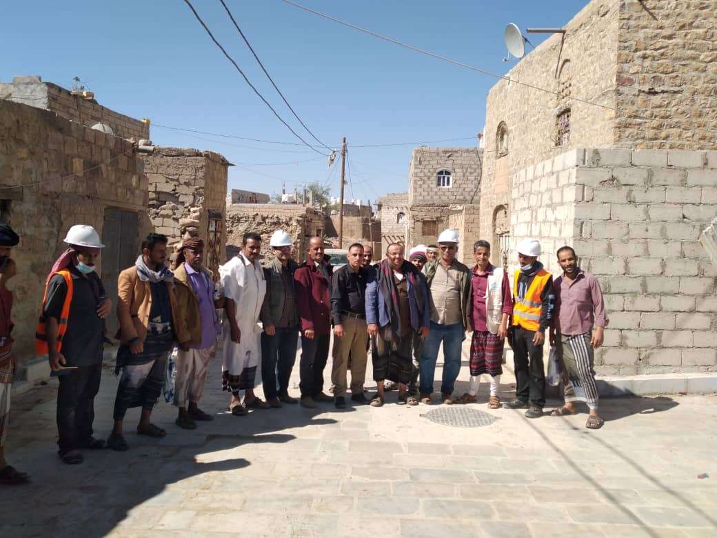 مدير عام قعطبةوفريق الصندوق الاجتماعي يتفقدون سير العمل في مشروع رصف شارع المحكمة.