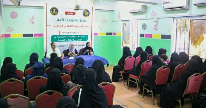 نظم مركز التدريب والتأهيل في المجلس الانتقالي الجنوبي، اليوم الخميس، محاضرة توعوية حول مهارات الآباء والأمهات والمربيين في التعامل مع أطفال التوحد، بالشراكة مع جمعية أطفال عدن للتوحد في العاصمة عدن. وفي مستهل المحاضرة ألقت الدكتورة منى باشراحيل عضو هيئة الرئاسة، المشرف العام لمركز التدريب والتأهيل كلمة رحب فيها بالحاضرات جميعاً، مؤكدة على أن اطفال التوحد بحاجه الى الدعم النفسي والاجتماعي من المحيط الذي حوله ليتمكنوا من التعايش مع باقي أفراد المجتمع. وأشارت باشراحيل إلى أهمية توعية الأمهات والاخصائيات في كيفية التعامل مع الأطفال ذوي التوحد وتعريفهم بأحدث الطرق والأساليب التي توصل إليها العلم في كيفية رعاية هذه الفئة. من جانبها ألقت فيروز حامد شمس الدين الأمين العام للجمعية كلمة شكرت فيها المجلس الانتقالي الجنوبي ممثلا بمركز التدريب والتأهيل على تنظيمه مثل هذه المحاضرات التي تساعد كثيرا في التعامل مع أطفال التوحد كونهم يحتاجون الكثير من الاهتمام والرعاية. وقدم الدكتور أحمد عبدربه محاضره تضمنت طرق التعامل السلمية مع الأطفال المصابون بالتوحد ، ودور الأسرة في مساعدتهم على التخاطب مع المجتمع ، والإجراءات السلوكية الصحيحة المتخذة للتعامل معهم.