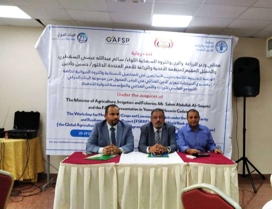 ورشة تدريبية خاصة بتدريب مختصين في المحاصيل البستانية والثروة الحيوانية بالعاصمة عدن.