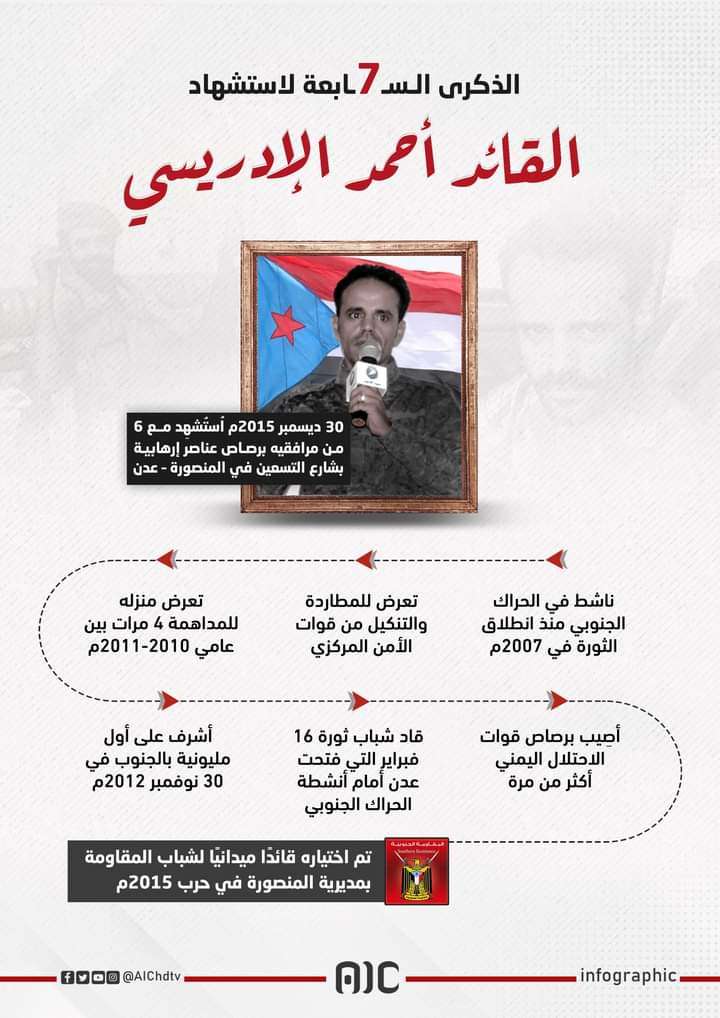 الذكرى السابعة لاستشهاد القائد أحمد الإدريسي انفوجرافيك
