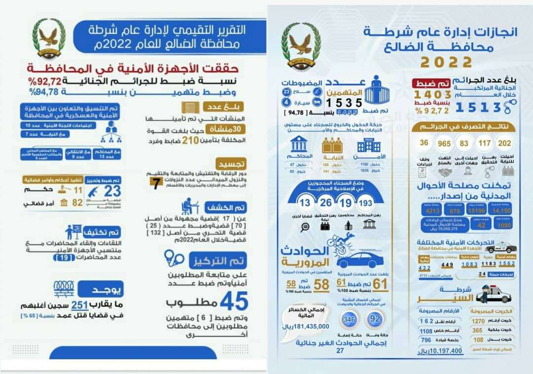 التقرير السنوي لانجازات إدارة عام شرطة محافظة الضالع خلال العام 2022م.