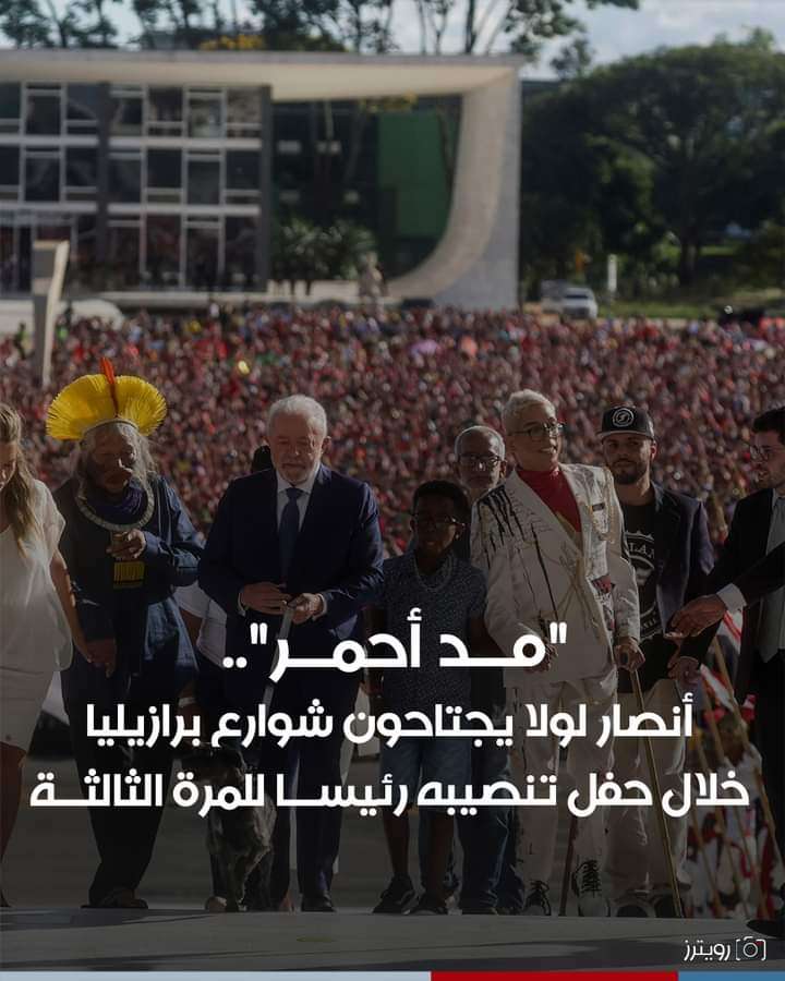 "اعزفوا الموسيقى، مع لولا رئيسا، الحياة سوف تتحسن".. هكذا ردد أنصار الرئيس البرازيلي اليساري المنتخب، لويس إيناسيو لولا دا سيلفا، عقب مراسم تنصيبه في العاصمة برازيليا، في أجواء احتفالية صاخبة. لولا (77عاما)، نصب الأحد لتولي رئاسة البرازيل للمرة الثالثة بعد 12 عاما، بعد توليه المنصب لولايتين بين 2003 و2010. وأدى لولا اليمين الدستورية أمام الكونغرس في العاصمة، وسط "مد أحمر" من أنصاره اجتاح شوارع برازيليا. وتمثل عودة لولا إلى قصر بلانالتو خطوة استثنائية، خاصة أنه كان يقبع في السجن قبل 4 سنوات فقط بسبب اتهامات بالفساد. مراسم التنصيب شهدت دقيقة صمت تكريما لأسطورة كرة القدم البرازيلية الراحل، بيليه، الذي توفي الخميس، والبابا السابق بنديكتوس السادس عشر الذي توفي السبت. وألقى لولا خطابا شديد اللهجة بعد تنصيبه، تعهد فيه بـ"إعادة بناء البلاد مع الشعب البرازيلي"، مشيرا إلى ما وصفه بـ"السجل الكارثي" لسلفه اليميني، جايير بولسونارو، متهما إياه بـ"استنفاد الموارد الصحية وتفكيك التربية والثقافة والعلم والتكنولوجيا وتدمير حماية البيئة".