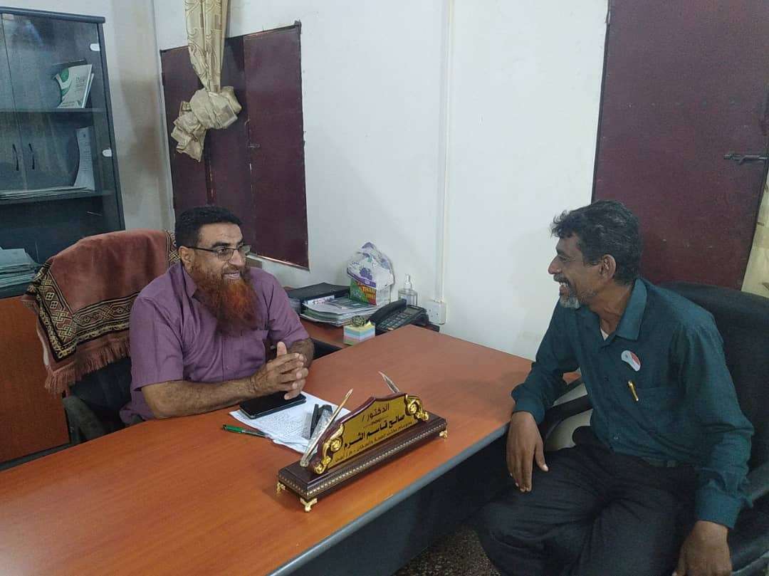 زار رئيس القيادة المحلية للمجلس الانتقالي الجنوبي بمديرية زنجبار المناضل صالح سالم ابوالشباب صباح اليوم الاثنين مكتب الصحة والسكان في المحافظة . وخلال الزيارة إلتقى ابو الشباب بمدير مكتب الصحة والسكان الدكتور صالح قاسم الثرم . ونقاشا ابو الشباب والثرم التنسيق والعمل المشترك في المديرية وتحسين المستوى الصحي . وأشاد رئيس القيادة المحلية للمجلس الانتقالي الجنوبي بمديرية زنجبار المناضل صالح سالم ابوالشباب بدور الدكتور الثرم في تحسين الجانب الصحي . وطالب أبو الشباب إعادة النظر في الجانب الصحي في مديرية زنجبار . وعبر الدكتور صالح قاسم الثرم عن سعادته البالغة بزيارة رئيس القيادة المحلية للمجلس الانتقالي الجنوبي بمديرية زنجبار المناضل صالح سالم ابوالشباب لمكتب الصحة والسكان لمناقشة الوضع الصحي المتعلق بمديرية زنجبار .