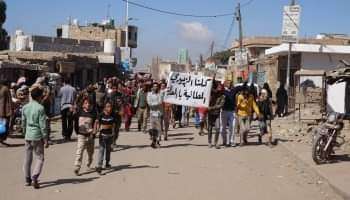 خرجت، اليوم الأحد، مسيرة جماهيرية في مديرية الشمايتين بمحافظة تعز، تندد بالجريمة المروعة بقتل المواطن قاسم الزبيدي في مدينة التربة، وتقطيع جثته ودفنها في ريف مدينة التربة . وطالب المحتجون الغاضبون ،سرعة تحويل الجناة إلى النيابة ومحاكمتهم وانزال أشد العقوبات بحق القتلة المجرمين. وحذروا الأجهزة الأمنية من التلاعب في القضية وتحويل مسارها ،خصوصا بعد أن كشفت الاحدث غير المتوقعة عدم قدرت الأجهزة الأمنية والاستخباراتية منذ أربعة أشهر الكشف عن أسباب اختفاء المواطن الزبيدي والكشف عن تفاصيل الجرمية. وكانت مصادر محلية أفادت بتمكن قوات الأمن من إلقاء القبض على المتهم الثالث المشترك بارتكاب الجريمة، و من خلال التحقيقات تم التوصل لمكان دفن جثه الزبيدي، وبحضور لجنة أمنية ومجتمعية وطبيب شرعي تبيّن أنه تعرض للتعذيب والتقطيع.