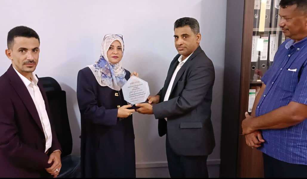 كرمت المؤسسة العامة للمسالخ وأسواق اللحوم صباح اليوم الثلاثاء 20 يونيو 2023م نائب مدير عام هيئة التأمينات والمعاشات لشؤون الايرادات في العاصمة عدن الأستاذة ميرفت محمد علي السلامي بحضور الاخ شمسان سيف علي نائب مدير المؤسسة العامة للمسالخ وأسواق اللحوم والاخ فاروق محمد فاروق مدير شؤون موظفي المؤسسة. هذا وسلم الاخ بسام فيصل عمر مدير عام المؤسسة العامة للمسالخ وأسواق اللحوم ترس كشهادة تقدير للأستاذة ميرفت عرفانا منهم وتقديرا لإسهاماتها في تسهيل معاملات مؤسستهم بشكل خاص والمرافق والمؤسسات الحكومية الاخرى بصفة عامة. من جانبها شكرت الأستاذة ميرفت سلامي المؤسسة على هذا التكريم وقالت: " طبعا نشكر المؤسسة العامة للمسالخ وأسواق اللحوم على هذا التكريم لأنه المرفق الوحيد الذي استجاب لنا وأحضر طاقم موظفيه لمراجعة كافة إيراداته داخل الهيئة لدينا والامور طيبة في هذا المرفق وفي تحسن مستمر." من جانبه تحدث مدير عام المسالخ وأسواق اللحوم بقوله: " من جانبنا نقدم شكرنا الجزيل للاستاذة ميرفت على جهودها وهذا التكريم قليل في حقها لانها ساهمت برفع المعاناة لدى موظفينا وهذا إحساس وشعور جميل للاستاذة ونتمنى لها مزيدا من التوفيق والسداد والنجاح في في مهام عملها. "