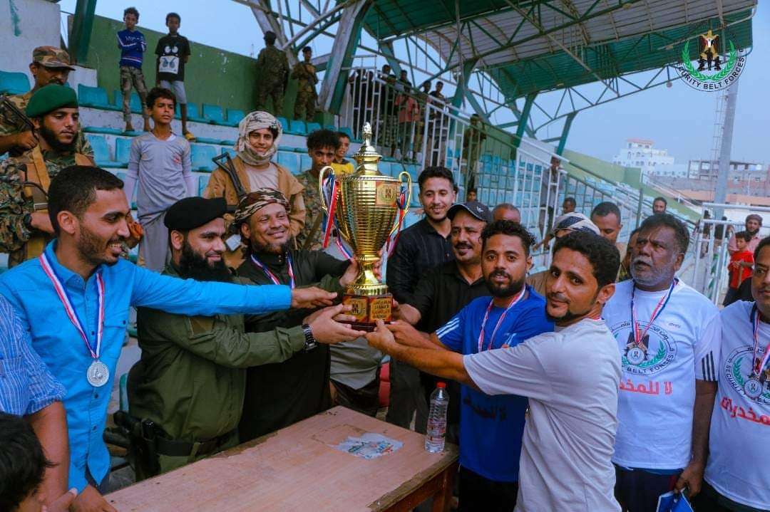 توج فريق الروضة بطلا لسباعية الحزام الأمني لكرة القدم بعد فوزه على فريق الجزيرة بضربتين ركنيتين،في اللقاء النهائي الذي جمعهما على ملعب نادي وحدة عدن، التي اقيمت برعاية العميد محسن الوالي القائد العام لقوات الحزام الامني. وتأتي البطولة ضمن الانشطة والفعاليات التي ينظمها الحزام بمناسبة اليوم العالمي لمكافحة المخدرات والذي يصادف 26 يونيو من كل عام. وشارك في البطولة أربعة اندية من العاصمة وهم(" النصر، الجزيرة، الجلاء، الروضة") حيث لعبوا بنظام خروج المغلوب من مرة واحدة . وفي اجواء حماسية رائعة استضاف ملعب نادي وحدة عدن البطولة، وزينت جنبات الملعب اللافتات والشعارات التي تحذر من خطر المخدرات، وكذلك ارتداء لاعبوا الفرق تشرتات حملت شعارات الحزام وكتابات "لا للمخدرات"، وانطلقت المباراة الافتتاحية.بين فريقي الجلاء والجزيرة انتهت المباراة بفوز الجزيرة 1/4,وفي المباراة الثانية التقى النصر بفريق الروضة والتي انتهت بفوز فريق الروضة 3/صفر ليتأهل الجزيرة والروضة الى المباراة النهائية ، وتعادل الفريقين في الشوطين صفر/صفر الا ان فريق الروضة احرز ضربتين ركنيتين كانت كفيلة بمنحه لقب البطولة . وفي ختام البطولة جرى تكريم فريق الروضة بكأس وميداليات ذهبية وسط فرحة عارمة لدى جمهوره الذي حضر من القلوعة. حضر البطولة العميد عرفات سعيد عبدالله مدير الادارة العامة للتوجيه المعنوي بالحزام الامني، والمقدم مياس حيدرة مدير إدارة مكافحة المخدرات ، والعميد خالد علوي مدير إدارة التدريب البدني والرياضي في الحزام رئيس نادي الجزيرة، والاستاذ جمال عمر رئيس نادي الروضة ، والقائد قاسم الثوباني ،وجمع غفير من مشجعي ومحبي الفرق المشاركة وعشاق كرة قدم.