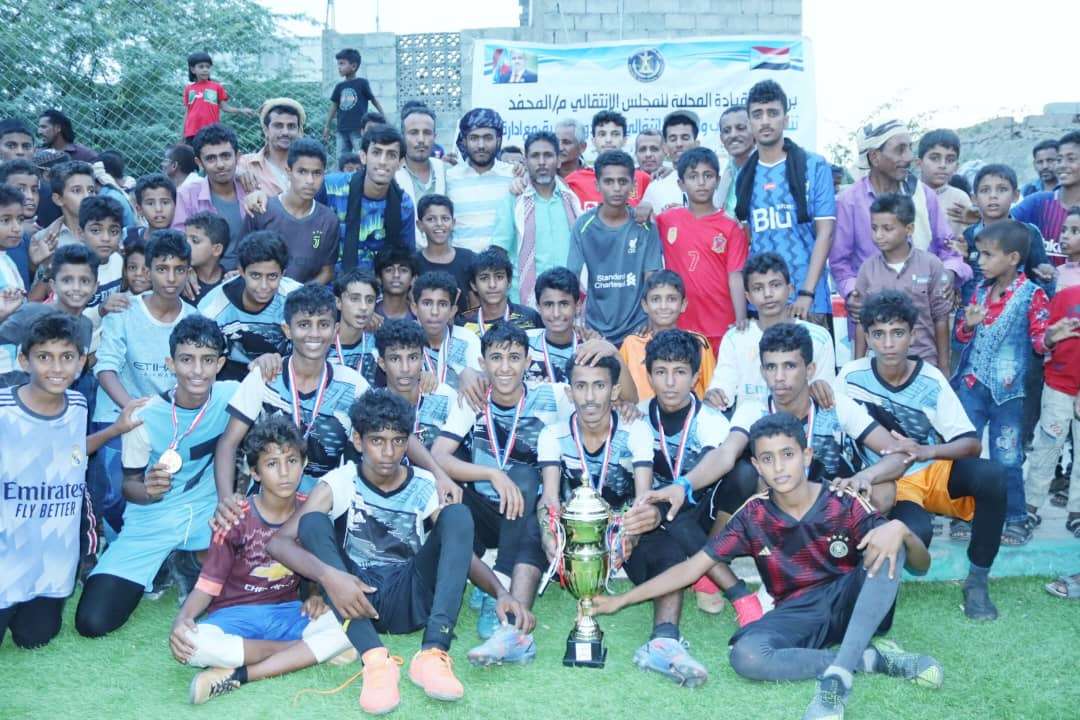برعاية القيادة المحلية للمجلس الانتقالي الجنوبي في مديرية المحفد بأبين،وبتنظيـﻤ إدارة الشباب بانتقالي المديرية، وبالتنسيق مع نادي المحفد الرياضي، أٌقيمت عصر يوم الثلاثاء المباراة النهائية لدوري الناشئين على ملعب الشهيد/مهدي لبرق الخليلي، والذي جمعت فريقي الـوادي وإتحاد المرتفـ؏، وبحضور الاستاذ/مهدي عبدالله مقبل رئيس الهيئة التنفيذية للمجلس الانتقالي بالمديرية، ومدير مكتب الشباب والرياضة بالمديرية الاستاذ/احمد ناصر فطيم، والاستاذ/خالد عبدالله عوض رئيس نادي المحفد الرياضي، والاستاذ/معمر احمد محضار مدير إدارة الشباب بانتقالي المديرية، وعدداً ڪبيراً من الشخصيات السياسية والإجتماعية والرياضية بالمديرية وفي شوط المباراة الأول اتسمت منذ بدايتها بالقوة والندية والحماس في المستطيل الأخضر، وكانت مباراة في قمة الروعة والجمال وسط حضور جماهيري منقطع النظير وتبادل الفريقان الهجمات بينهما في بداية هذا الشوط ولكن فريق الوادي تمكن من تنظيم صفوفه وهاجم لاعبوه بكل قوه وابدعوا وجادوا بكل براعه و فرض سيطرتهم على مجريات الشوط الاول وتمكنوا من تسجيل أربعة اهداف متتالية حيث جاء الهدف الأول عن طريق هداف الفريق اللاعب ناصر محمد احمد الخضر، ويضيف اللاعب عوض الشتار الهدف الثاني، وبعدها يسجل المهاجم ناصر الخضر الهدف الثالث ليتمكن فريق الوادي من فرض واقع مباراة القمة الكروية وسط ذهول لاعبي فريق اتحاد المرتفع، ويؤكد فريق الوادي سيطرته بتسجيل الهدف الرابع الذي جاء عن طريق اللاعب عوض الشتار، وقبل ان يعلن حكم المباراة انتهاء الشوط الاول يحل مهاجم فريق المرتفع الهدف لفريقه عن طريق اللاعب يسلم خالد لعوس، لينتهي الشوط الاول بتقدم فريق الوادي بأربعة اهداف مقابل هدف وحيد لفريق إتحاد المرتفع ومع بداية الشوط الثاني والذي كان شوطاً مثيرا وحماسياً، وكان لفريق اتحاد المرتفع حيث نزل وهو عازم على عدم الاستسلام والسعي على تعديل نتيجة المباراه، وبالفعل بدأ في ترتيب صفوفه وشن هجوماً على مرمئ فريق الوادي وتمكن من الوصول وتسجيل الهدف الثاني بواسطة اللاعب عوض محمد الهدف والذي اشعل الحماس والإثارة ومحاولة فريق اتحاد المرتفع لتقليص النتيجة وسط تراجع لاعبو فريق الوادي للدفاع عن مرماهم ومن عرقلة حصل فر يق اتحاد المرتفع علئ ضربة جزاء احتسبها حكم المباراة سجل منهم اللاعب يسلم خالد لعوش الهدف الثالث الذي فتح شهية فريقه وقربهم من تعديل النتيجة الا أن فريق الوادي كان له رأي آخر ومن هجمة مرتدة تمكن مهاجمه اللاعب ناصر محمد احمد الخضر من تسجيل الهدف الخامس منهياً أمآل فريق اتحاد المرتفع في تعديل النتيجة وبهذا الهدف يعلن حكم المباراة انتهاء زمن وقت المباراة المثيرة بفوز ثمين لفريق الوادي بخمسة أهداف مقابل ثلاثة اهداف لفريق اتحاد المرتفع ادار المباراه الحكم عبدالرحمن مقروم حكم ساحة، وساعده بالخطوط كلا ًمن: الحكم عبدالرحمن النجار، والحكم عبدربه عباد عقب إنتهاء المباراة تم تتويج فريق الوادي بكأس البطل لدوري الناشئين بالمديرية، وفريق إتحاد المرتفع بكأس الوصيف، فيما توج أفضل هداف بالدوري اللاعب/ناصر محمد احمد لاعب فريق الوادي، وتحصّل اللاعب/يسلم خالد لعوش لاعب فريق إتحاد المرتفع على لقب أفضل لاعب بالدوري، فيما تحصّل أفضل حارس لاعب فريق الوادي أيمن محمد حديج، وتحصل لاعب فريق الجبر احمد سالم سوط على لقب أصغر ناشئ بالدوري، كما تم تڪريم فريق الوادي بالميداليات الذهبية، وفريق إتحاد المرتفع بالميداليات الفضية، وكذا ايضاً تم تڪريم عدداً من الحڪّام والفرق الشعبية، والشخصيات الإجتماعية، والرياضية، والإعلامية بالشهادات التقديرية عرفاناً لما بذلوه في إسهامهم في إنجاح دوري الناشئين بالمديرية والجدير بالذكر شارك 12 فريق رياضي من مختلف الفرق الشعبية بمناطق وقرى المحفد في الدوري الكروي الذي نظمته إدارة الشباب بانتقالي المديرية ضمن منافسات المجموعات لفئة الناشئين بالمديرية حضر المباراة النه