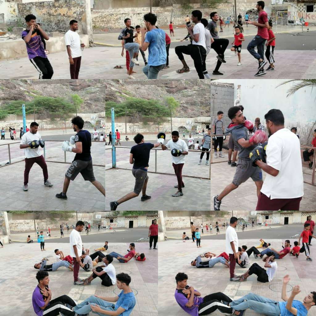 الكابتن عواد عمر يواصل تدريبات ملاكمي التلال في مقر النادي بحماس كبير.