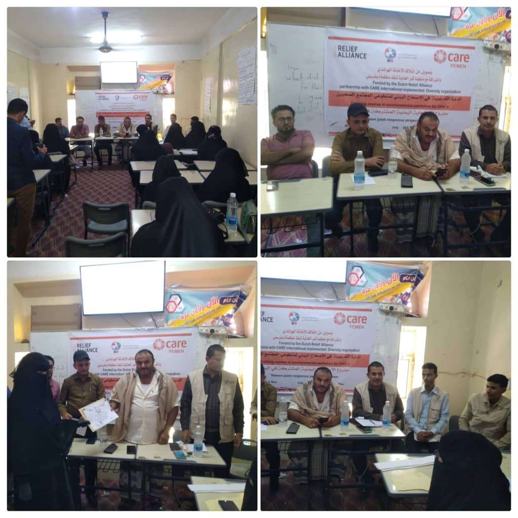 منظمة دايفرستي تختتم الدورة التدريبية في الصحة العامة والاصحاح البيئي لمتطوعي المجتمع الصحيين بقعطبة.