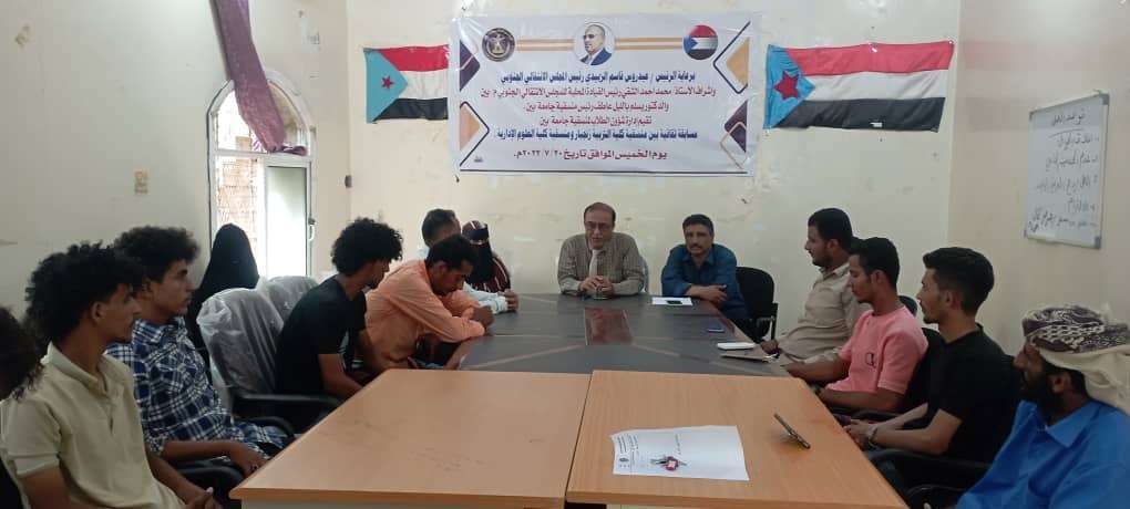 منسقية الانتقالي بجامعة أبين تنظم مسابقة ثقافية لطلاب كليتي التربية والعلوم الإدارية.