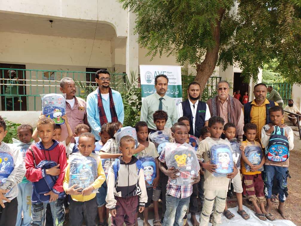 مؤسسة " شباب أبين" تدشن توزيع الحقيبة المدرسية للطلاب مجمع الفتح بالمسيمير في خنفر