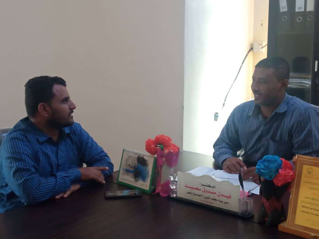 مدير عام مكتب الشؤون الاجتماعية والعمل بأبين يلتقي المنسق الميداني لمشاريع مؤسسة استجابة للإغاثة والتنمية ومنظمة الفاو.
