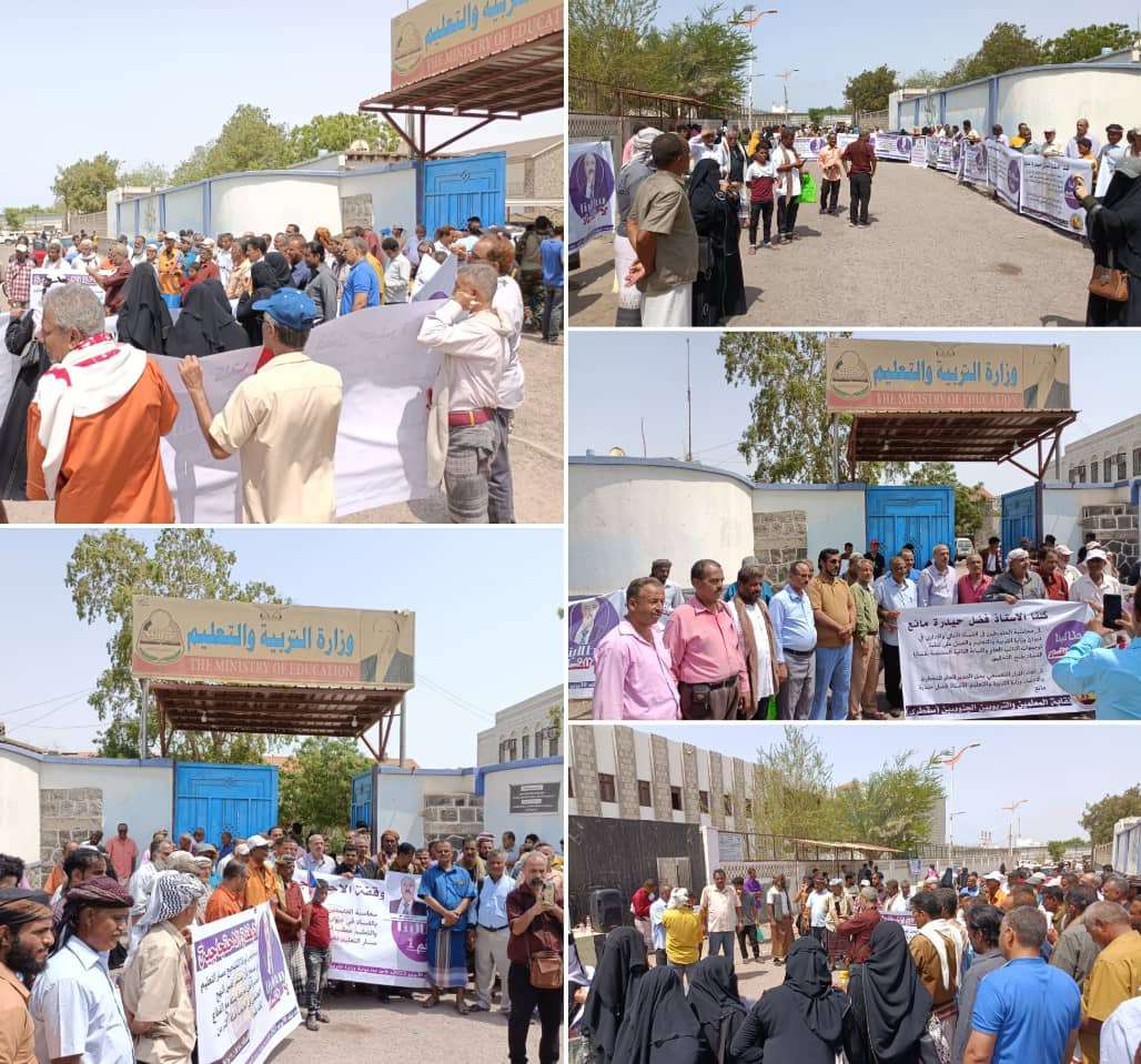 أقيمت صباح اليوم الأحد 30 يوليو 2023م وقفة احتجاجية كبرى تجمع فيها حشد من المعلمين والتربويين من مديريات العاصمة عدن ومحافظات مجاورة أمام ديوان وزارة التربية والتعليم بالعاصمة عدن احتجاجا على فساد الوزارة. هذا وكانت مطالب المعلمين والتربويين في وقفتهم الكبرى هذه متعددة وكانت في مقدمتها اجتثاث الفساد المستشري في وزارة التربية والتعليم والتي حاربها مرارا وكشفها مدير ادارة التخطيط والإحصاء الأستاذ فضل مانع حيدرة وكوفئ بالإيقاف عن العمل من قبل الوزير ومجموعة الفاسدين معه الى جانب العديد من مطالب المعلمين التي ركنتها الوزارة على الرف منها الحقوق المسلوبة. في الوقفة قيلت العديد من الكلمات منها كلمة النقابة العامة للمعلمين والتربويين الجنوبيين ألقاها الأستاذ سعيد بن الحافة نائب رئيس النقابة العامة للمعلمين رئيس نقابة محافظة أبين والتي عدد فيها مطالب الوقفة وذكر أسماء لمجموعة من قيادات الوزارة التي كشف فسادهم تقرير الاستاذ فضل مانع المفصل ووعد بمواصلة التصعيد. بعدها تعددت الكلمات من قبل القيادات التربوية الحاضرة منهم الاستاذ لطف البان أمين عام النقابة العامة للمعلمين وسكرتيرها الاستاذ وهيب البحري ورئيس دائرة الاعلام الاستاذ جمال مسعود الذي تلا البيان الختامي وكلمات مختصرة لبعض القيادات التي حضرت وقصيدة شعرية تتحدث عن الفساد وضرورة محاربته. حضر الوقفة قيادات من منظمات المجتمع المدني منها المفوضية الجنوبية المستقلة لمكافحة الفساد بحضور رئيسها المهندس عميد طيار عبدالرحمن علي يحيى والقيادات المؤسسة الاستاذ شيخ بانافع والاستاذ عبدالرحمن السعدي وعدد من الاعلاميات والشخصيات الاجتماعية. نص البيان: بيان الوقفة الاحتجاجية السلمية أمام ديوان وزارة التربية والتعليم ايها المعلمون الاماجد ايتها المعلمات الماجدات في الوقت الذي بدأت رائحة ملف الفساد في وزارة التربية والتعليم تزكم الانوف وما تبعه من أحداث ساخنة وإجراءات باطلة حالت من المضي قدما من أجل تصحيح الوضع واجتثاث منابع الفساد المشار له ضمن الوثائق المقدمة من قبل الاستاذ فضل حيدرة مانع ايها المعلمون الاماجد ايتها المعلمات الماجدات إننا في نقابة المعلمين والتربويين الجنوبيين والمجتمع المدني والقطاعات المهتمة بالجانب التعليمي قد تداعينا لهذه الوقفة لكي نؤكد من خلالها على الآتي اولا / نطالب بكل احترام وتقدير الاستاذ طارق العكبري وزير التربية والتعليم ان يصحح إلاجراءات القانونية من خلال الآتي 1/ ايقاف كل من تم الإشارة لهم في الوثائق المدونة في الملف والذين طالتهم اتهامات الفساد وهما // عبدالله عثمان المخلافي رئيس المكتب الفني في وزارة التربية و المخطط فيما اتخذ من إجراءات واتفاقيات سرية لاتخدم الصالح العام في المناطق المحررة // خليل الحصيني وهو مستشار وزير التربية والمتلاعب في مخصصات المشاريع المقدمة من المنظمات الدولية ( المنح ) والتي تذهب غالبيتها لمناطق سيطرة الحوثي ليستفاد منها في الجانب الحربي ضد الشرعية وحرمت منها المناطق المحررة الا بما جاء به من الفتات الذي لا يخدم التعليم ثانيا / إحالة كل من شملته وثائق التحقيق للتحقيق للوصول إلى الحقائق من أجل اغلاق الباب أمام شبكة الفساد ثالثا / العدول عن قرار توقيف الاستاذ فضل حيدرة مانع ( مدير عام التخطيط والاحصاء ) وإعادته إلى وظيفته لكون إجراءات توقيفه تعسفية و غير قانونية رابعا نطالب بعودة كل المبعدين والمقصيين عن وظائفهم وبمن فيهم من لديهم احكام قضائية بالعودة إلى وظائفهم خامسا / يؤكد كل المحتجين من نقابة ومنظمات المجتمع المدني بأنه يجب الشروع في تصحيح مسار التعليم في الوطن وانتشال الوضع المزري الذي وصلت إليه العملية التعليمية بسبب تعطيلها من قبل الفاسدين الذين لا مصلحة لهم سوى تدمير التعليم سادسا / يؤكد المحتجين على الإسراع بالمتابعة من قبل الوزير شخصيا والضغط على الحكومة من أجل صرف حقوق المعلمين والتربويين وهيكلة الأجور بما يتناسب والعيش ال