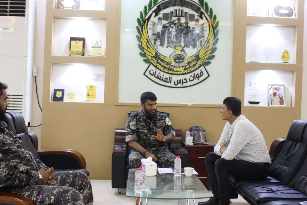 التقى العميد أحمد مهدي بن عفيف قائد قوات حرس المنشآت الحكومية اليوم في مكتبه مدير عام مكتب الشباب والرياضة في العاصمة عدن الكابتن وجدان شاذلي. وفي مستهل اللقاء رحب العميد أحمد بن عفيف بالكابتن وجدان شاذلي متبادلا معه عدد من المواضيع الرياضية حيث قدم العميد أحمد بن عفيف شرحا مفصلا عن تأسيس نادي حرس المنشآت. وأكد بن عفيف أن الرياضة شريان الحياة ويجب الاهتمام بإقامة الأنشطة والفعاليات الرياضية بشكل مستمر للحفاظ على الشباب وإبعادهم عن المظاهر السلبية. عقب ذلك زار العميد أحمد بن عفيف والكابتن وجدان شاذلي عدد من صالات ومرافق نادي حرس المنشآت مطلعان على مدى التطور في البنية التحتية للنادي. واطلع مدير عام مكتب الشباب والرياضة في عدن على الأضرار التي لحقت بالمنشآت الرياضية التابعة لنادي حرس المنشآت جراء الأمطار والرياح التي ضربت العاصمة عدن الاسبوع. وأشاد الكابتن وجدان شاذلي بما شاهده من منشآت ومرافق رياضية متميزة معبرا عن إعجابه وافتخاره بمثل هكذا منشآت رياضية، موجها الشكر للعميد احمد بن عفيف على جهوده في دعم الأنشطة الرياضية ودعمه للشباب والرياضيين بمختلف الألعاب مؤكدا حرص مكتب الشباب والرياضة في عدن على دعم تلك الجهود. يشار إلى أن عدد من منشآت نادي حرس المنشآت قد تعرضت لأضرار اثر الأمطار والرياح التي شهدتها العاصمة عدن الاسبوع الماضي حيث تضررت الصالة المغلقة واسطبل الخيول وملعب كرة القدم ومضمار ومنصة الفروسية.