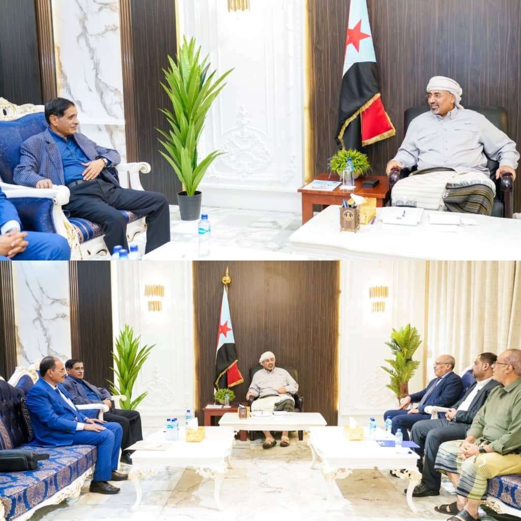 الرئيس الزُبيدي يناقش مع اللواء البحسني سُبل تعزيز الجبهة الداخلية
