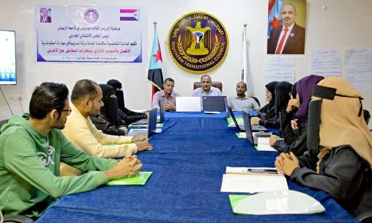 اختتمت الدائرة التنظيمية بالأمانة العامة لهيئة رئاسة المجلس الانتقالي الجنوبي، اليوم الثلاثاء، في العاصمة عدن، الورشة التدريبية التي نظمتها لقسم سكرتارية دوائر الأمانة العامة، في مهارات السكرتارية" الاتصال والتحرير الإداري ومهارات التعامل مع الآخرين". والقى الأستاذ حسين الغزالي، رئيس الدائرة التنظيمية، كلمة في ختام الورشة رحب فيها بالمشاركين، وبين من خلالها أهمية ما حوته الورشة ومحتواها الهادف إلى تنمية قدرات السكرتارية، ومهارات التعامل أثناء العمل، وتعزيزها في سياق تقديم الأداء المطلوب، حاثًا المشاركين على عكس ما تم تلقيه من الورشة، في أعمالهم على الواقع، متمنيا لهم التوفيق والنجاح. وتلقى المشاركون في ختام الورشة التي استمرت لمدة ثلاثة أيام على التوالي، من المدرب شكري عبد الحكيم، عضو الدائرة التنظيمية، تعريفات عن التحرير الإداري، والمهارات العلمية للسكرتارية ، والعوامل التي تُشكل السلوك الإنساني، مقدمًا عددا من المداخل حول السكرتارية، وموضحًا طرق التعامل والاساليب التي يجب العمل بها، حيث جرى عمل مجموعات وتنفيذ عددا من التمارين في هذا السياق.