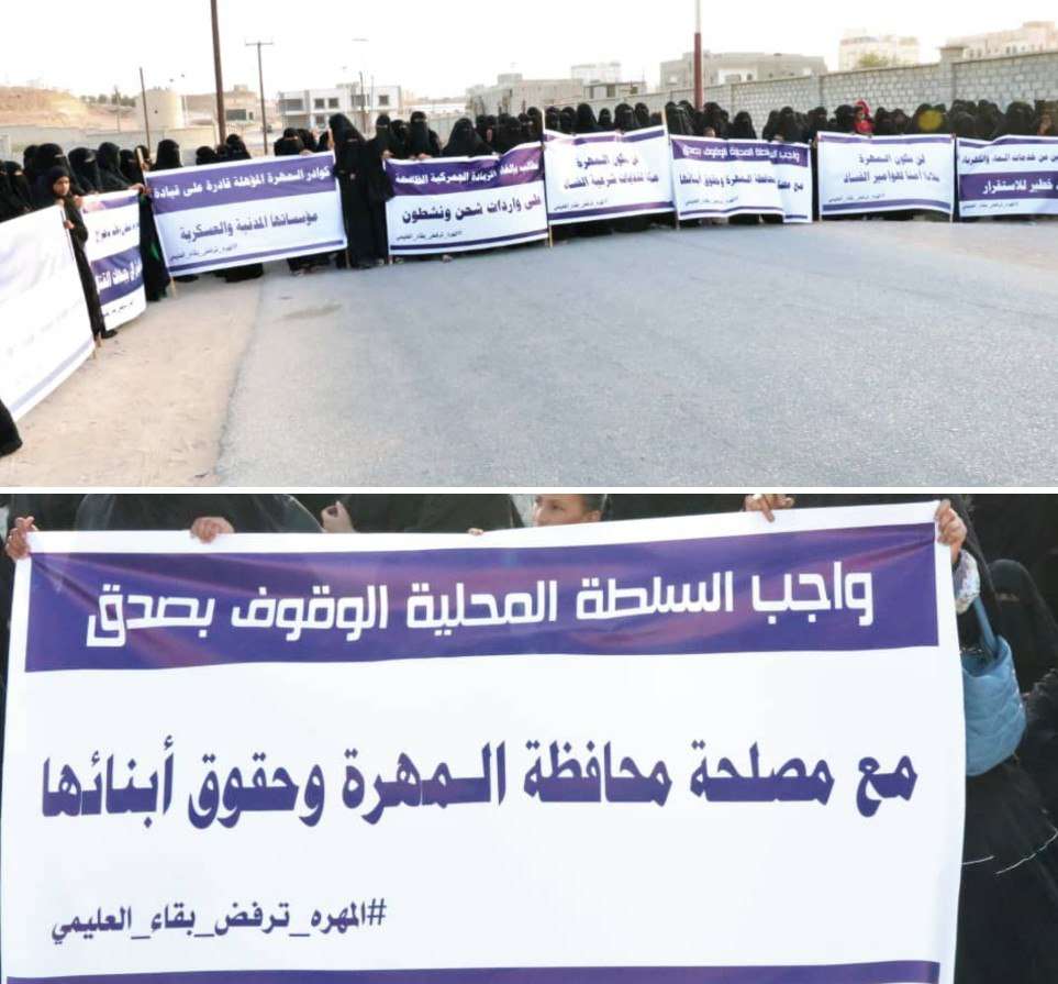 استمراراً للاحتجاجات الشعبية السلمية التي تشهدها محافظة المهرة للتنديد بالمعاناة المستمرة جراء تدهور الحالة المعيشية و تردي خدمات الكهرباء و الماء بالمحافظة نُظمت وقفة احتجاجية نسوية في مدينة الغيضة عصر اليوم أمام القصر الجمهوري الذي ينزل فيه رئيس مجلس القيادة الرئاسي د. رشاد العليمي للمطالبة بايقاف انقطاعات الماء و الكهرباء و ضبط الأسعار و محاربة الفساد وشارك في الوقفة المئات من النساء و الناشطات المجتمعات بالمهرة ، و اوضحن أن تفاقم معاناتهن كنساء و ربات بيوت مسئولات عن الأسر والأطفال قد زادت أكثر وأكثر في ظل هذه الظروف المتردية أصلا وهي ما اضطرتهن للمبادرة الذاتية للخروج والاحتجاج لإيصال رسالتهن لمن يهمه الأمر. رفعن خلالها لافتات تندد بتجاهل الجهات المختصة لمعاناة المواطنين بالمحافظة و مناشداتهم ودعت المحتجات السلطات المحلية و الحكومة و مجلس القيادة الرئاسي إلى تحمل مسؤوليتها في توفير هذه الخدمات الأساسية و إصلاح مؤسسات الدولة و المرافق الحكومية و محاربة الفساد وتمكين الكوادر المؤهلة و النزيهة من أبناء وبنات المحافظة من إدارتها. و أصدرت الوقفة بياناً وضحت فيها أهدافها و مطالبها فيما يلي نصه:- بسم الله الرحمن الرحيم نتيجة لاستمرار معاناة محافظة المهرة من تردي الخدمات و تدهور الأوضاع المعيشية من سيء إلى أسوء حتى وصلت إلى مستوى ونتيجة للتجاهل المستمر من قبل الجهات الحكومية المسئولة عنها من سلطات محلية و حكومة مناصفة ومجلس قيادة رئاسي للمطالب المشروعة لأبناء محافظة المهرة والتي عبروا عنها خلال لقائتهم مع الجهات المختصة و مناشداتهم لها و احتجاجاتهم السلمية التي خرجوا يطالبون بها في عموم مناطق ومديريات المهرة خلال الفترات السابقة واجمع عليها أهل المهرة جميعهم رجال ونساء وشباب و شيوخ بكافة فئاتهم الاجتماعية و توجهاتهم السياسية و لازالوا مستمرين في مطالبهم المشروعة حتى تحقيقها كاملة وهي من الواجبات الأساسية على الدولة والجهات المختصة تجاه مواطنيها ولم تحقق حتى أبسطها ولهذا خرجنا للاحتجاج السلمي ضمن حقنا المكفول في الدستور والقانون ولأن معاناتنا نحن نساء ورباب بيوت مسئولات عن الأسر والأطفال قد زادت أكثر وأكثر في ظل هذه الظروف بما يوجب علينا التعبير عن احتجاجنا لهذه الأوضاع المتدهورة و استنكارنا للتجاهل المتعمد والمتكرر من قبل الجهات المختصة واستخفافها بمعاناة المهرة وحقوق أبنائها وبناتها وأخرها التصريحات لرئيس مجلس القيادة الرئاسي الدكتور رشاد العليمي والتي كانت محبطة لأبناء و بنات المهرة الذين تحملت محافظتهم أعباء وتكاليف الترتيبات الطويلة و المرهقة لهذه الزيارة واقامته التي صاحبها انتشار وإجراءات عسكرية وكأنها طوارئ غير معلنة قيدت تحركاتهم الاعتيادية في عاصمة المحافظة وحولتها إلى ثكنة عسكرية و زادت الحالة المعيشية الخدمات تدهوراً إلى تدهور. ومن وقفتنا الاحتجاجية هذه نحدد نحن نساء المهرة و ناشطاتها المجتمعيات مطالبنا للجهات المعنية فيما يلي :- 1- أن تتحمل الجهات الحكومية مسئوليتها و القيام بدورها في ايقاف تدهور الخدمات وتردي الحالة المعيشية المتواصلة في محافظة المهرة والتجاوب الجدي بحلول حقيقية . 2- على الجهات المختصة العمل على استمرار الكهرباء و انتظام وصول المياه إلى المنازل وحصول المواطنين على الوقود , و إلغاء الزيادة الأخيرة في ساعات طفي الكهرباء وانقطاعات المياه عن الأحياء والحواري واسعار البترول والديزل. 3- العمل على اصلاح الاختلالات في مرافق الخدمات العامة ومحاربة الفساد وتمكين الكوادر المؤهلة من أبناء و بنات المحافظة من إدارة هذه المؤسسات. 4- نطالب الجهات المختصة أن تقوم بدورها في النزولات على الأسواق والمحلات التجارية لمراقبة البضائع و أسعارها و ضبط المخالفين. 5- نرفض رفضاً قاطعاً تحويل محافظة المهرة المستقرة إلى ساحة للصراعات السياسية الإقليمية و الدولية التي لن تجني منها المهرة غير العبث و الدمار. صادر أثناء الوق