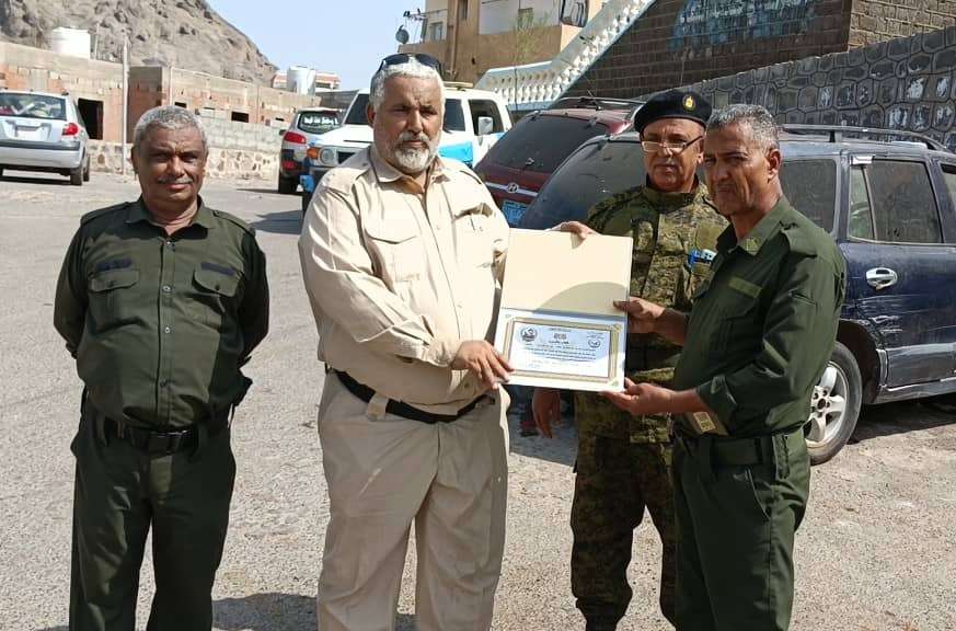 كرم مدير شرطة العاصمة عدن اللواء مطهر علي ناجي الشعيبي صباح اليوم الاثنين 21 أغسطس 2023م مدير قسم شرطة كريتر بمديرية صيرة العقيد نبيل عامر بشهادة شكر وتقدير نظير ما يبذله من أعمال قيادية وإدارية بمسؤولية ويقظة نحو الواجبات الموكلة إليه والتعامل بكل صدق وشفافية مع المواطنين والإدارات الحكومية التابعة لاختصاصة وإدارته إدارة أمن عدن والتي أثبت فيها من خلال الجهود المبذولة منذ بداية عمله في السلك العسكري وقيادة شرطة كريتر. سلمت الشهادة التقديرية لبن عامر نيابة عن مدير شرطة عدن العقيد عبدالحكيم الجبري مدير شؤون المتابعة بإدارة أمن عدن والرائد أحمد خليل مستشار مدير أمن عدن بحضور العقيد فهمي الصوفي مدير المنطقة الأمنية الثالثة وضباط وصف ضباط وأفراد شرطة كريتر. هذا وقد وجه العقيد الجبري بكلمة للحاضرين قيادة وضباط وصف ضباط وافراد القسم بقوله: " بداية انقل لكم تحايا مدير شرطة عدن اللواء مطهر الشعيبي ويطالبكم بمزيد من اليقظة وبذل المزيد من الجهود وهو بدوره يعدكم بمزيد من الدعم بالسلاح والسيارات واللباس العسكري وان هذه الشهادة التقديرية لمدير القسم العقيد نبيل تعتبر شهادة للكل في القسم وعلى مدير القسم الرفع بأسماء المبرزين ليتم تكريمهم شخصيا. " بدوره الرائد احمد خليل تحدث بكلمة قال فيها: " ان هذا التكريم ليست لشخص المدير فقط وانما هو تكريم للكل." وأشاد بقيادة شرطة كريتر وبالخبرة العسكرية والامنية والحنكة التي يتمتعون بها لخدمتهم الطويلة. " من جانبه العقيد نبيل عامر قال: "نشكر قيادة شرطة عدن ممثلة باللواء الركن مطهر الشعيبي على هذا التكريم والذي نعده وساما معلقا على صدورنا ككل قيادة وضباط وصف ضباط وافراد." وطالب الدفعة التي تخرجت من الدورة والتي استمرت 45 يوم بمزيد من الجهد والمثابرة والالتزام ووعد بتسجيل دفعات اخرى في المرات القادمة. يذكر أن العقيد نبيل عامر تحصل على تكريم سابق من قيادة أمن عدن وتكريمات اخرى من جهات منها التحالف العربي ومنظمات داعمة للجانب الامني.
