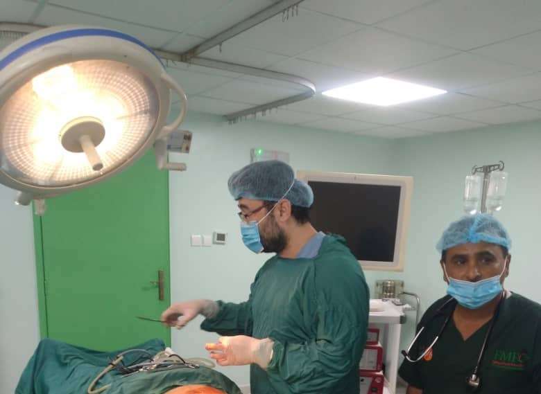 وحدة جراحة المناظير في مستشفى الرازي العام بأبين تزيل كيس من تجويف الحوض لسيدة