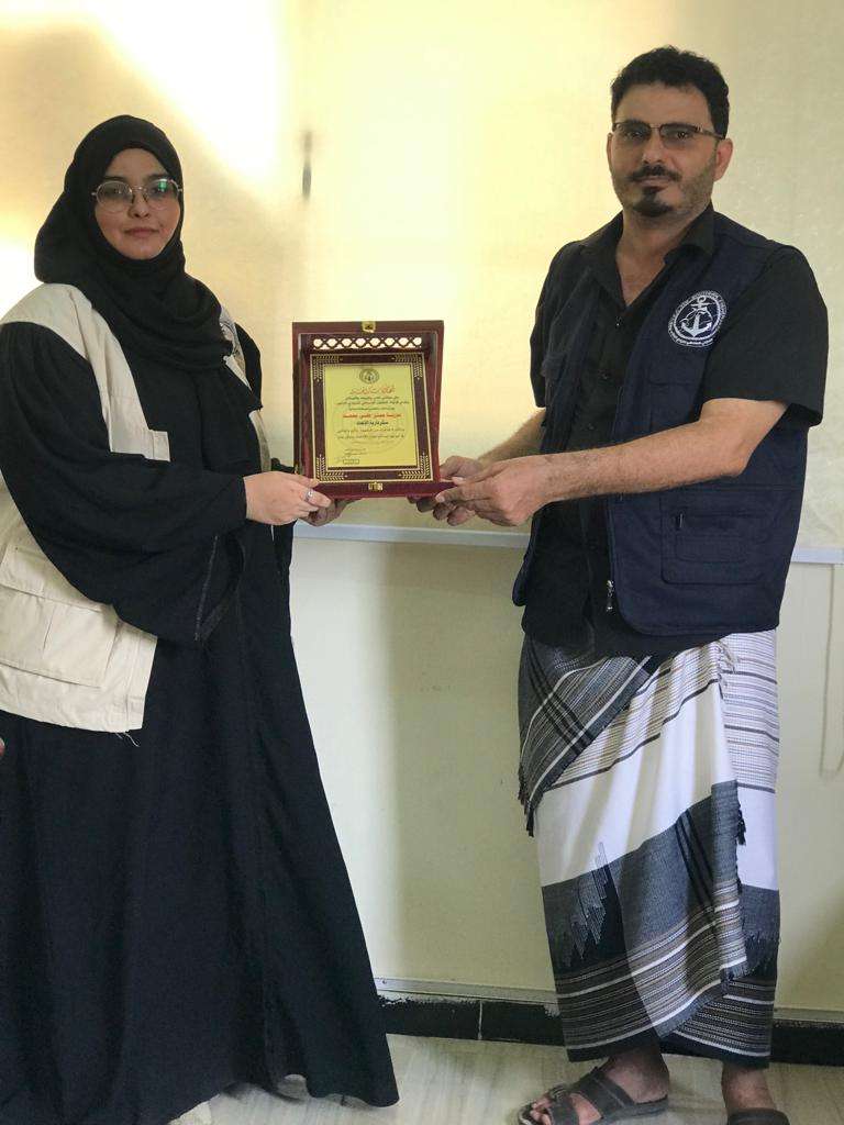كرم القائم بأعمال رئيس الاتحاد التعاوني السمكي لصيادي الجنوب، أدهم جواد، الموظفة المثالية بدرية عمر، سكرتارية المكتب، بدرع الاتحاد. ويأتي التكريم على ما قدمته السكرتارية من مجهود وتفاني والتزام في عملها، بدون كلل أو ملل، ولما لديها من خبرة مهنية عالية ساعدت على رفع قدرات الكادر الوظيفي لمواكبة التطور المؤسسي. وخلال التكريم، حث جواد في كلمة مقتضبة كافة الكادر الوظيفي على الاقتداء بزميلتهم.. داعيًا إلى بذل مزيد من الجهود والرفع من قدراتهم لكي يتم تكريمهم في المستقبل القريب. وطالب جواد الجميع بالالتزام وبذل الطاقات للنهوض بعمل مكتب الاتحاد للوصول به إلى مستويات متقدمة في البناء المؤسسي وفن الإدارة والتخاطب والأرشفة. كما قدم جواد مبادرة شخصية منه بتكفله ببدل المواصلات لجميع الموظفين، ابتداء من شهر سبتمبر إلى أن يتم استخراج الموازنة التشغيلية، وذلك حفاظًا على استمرار العمل في مقر الاتحاد، وتخفيف الحمل على الكادر الوظيفي. ودعا كل الجهات ذات العلاقة وخصوصًا المنظمات المانحة إلى زيارة الاتحاد وتقديم الدعم له، وتأهيل الكادر الوظيفي والإداري في البناء المؤسسي وفن الإدارة والنظام المحاسبي والتدريب والتاهيل وغيرها من الدورات التي تخص مجال وعمل الاتحاد. من ناحيتها، شكرت الموظفة بدرية القائم بأعمال رئاسة الاتحاد على تكريمه لها، واعتبرته شهادة فخر واعتزاز لما له من أهمية في رفع معنوياتها.. داعية زملائها إلى تسخير كل إمكانياتهم في خدمة الاتحاد لكونه مصدر رزقهم. بدورهم قدم موظفو الاتحاد شكرهم وتقديرهم للأستاذ جواد على مبادرته الكريمة التي ستساهم في استمرار عملهم بشكل يومي، والمنبثقة من إخلاصه وحفاظه على مصلحة عمل الكادر الوظيفي بشكل خاص ومصلحة الاتحاد بشكل عام.