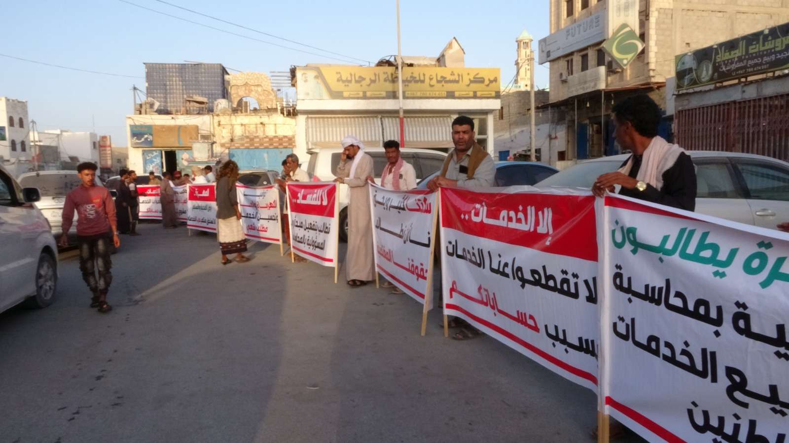 شهدت عاصمة محافظة المهرة يوم الأربعاء 13/سبتمبر/2023م، وقفات احتجاجية أمام المجمع الحكومي واخرى أمام ساحة البريد للمطالبة بتحسين الخدمات الأساسية وتنديداً بزيادة ساعات انطفاء الكهرباء في العاصمة الغيضة وباقي مديريات المحافظة ورفع المحتجون لافتات تندد بانقطاعات الكهرباء وخدمة المياة وتطالب السلطة المحلية بالمحافظة بوضع حلول جذرية لمشكلة انقطاع التيار الكهربائي وتفعيل دور الرقابة والمحاسبة ونيابة الأموال العامة وإيقاف إيرادات المحافظة وتسخيرها في توفير الخدمات الأساسية للمواطنين. كما طالب المحتجون رئيس وأعضاء مجلس القيادة الرئاسي والسلطة المحلية والجهات ذات العلاقة وضع حد للفساد والفاسدين والذين تسببوا في تدهور الخدمات الضرورية بالمحافظة والتوضيح للرأي العام أسباب تردي الخدمات الضرورية بالمحافظة مؤخراً وتخفيض أسعار المشتقات النفطية أسوة بالمحافظات المجاورة ومراعاة ظروف المواطنين في ظل تدهور الأوضاع الاقتصادية وانخفاض دخل المواطنين والعديد من المطالب الضرورية المرتبطة بحياة المواطنين. وصدر عن الوقفة الاحتجاجية بياناً جاء فيه: استناداً إلى قانون حرية التعبير المكفول في القانون والدستور السائد في البلد ومن واقع المعاناة التي يعيشها أبناء محافظة المهرة في الفترة الأخيرة والمتمثلة في عدم توفير أهم الخدمات الضرورية للمواطنين والتي تعتبر حق وليست مطلب والمتمثلة بخدمة الكهرباء والمياه وغيرها من الخدمات الأساسية التي ترتبط بها جميع الاحتياجات الأخرى في شتى مجالات الحياة وعدم اكتراث السلطة المحلية بالمحافظة عن معاناة المواطنين وكثرة ساعات اطفاء التيار الكهربائي عن عموم مناطق ومدن ومديريات المحافظة بما فيها العاصمة الغيضة . خرجنا اليوم نحن أبناء هذه المحافظة المسالمة الطيب أهلها من جميع أطيافنا وقبائلنا ومكوناتنا ولم يجمعنا سوى حرصنا وحبنا لهذا البلد وما وصلنا اليه من شبه انعدام تام لكثير من الخدمات الأساسية التي نعتبرها حقا من حقوقنا ويجب على قيادة السلطة المحلية بالمحافظة توفيرها لنا بالشكل المطلوب ، وليعلم القاصي والداني أن الدافع للخروج وطني بحت - ولكي يطمئن الجميع - نؤكد أننا لا يوجد خلفنا أي حزب أو مكون سياسي ولا أشخاص وإنما انطلقنا من دافع المسؤولية والمعاناة التي عشناها بسبب تردي الخدمات الأساسية والفساد المستشري في المحافظة ، هذا ما جعلنا نخرج من كافة مديريات المحافظة لإقامة هذه الوقفة الاحتجاجية الشعبية السلمية لنبين الرفض الشعبي والمجتمعي على مثل هذه التصرفات الغير مقبولة. ومن خلال هذه الوقفة فإننا نخاطب قيادة السلطة المحلية بالمحافظة والجهات ذات العلاقة بالعدول عن هذه القرارات الجائرة بحق أبناء المحافظة وإرجاع تشغيل خدمة الكهرباء بنظام 24ساعة التي كانت مستمرة دون انقطاع منذ فترة طويلة وتوفير كافة الخدمات الضرورية وفي حالة عدم تلبية مطالبنا فإننا كمواطنين لن نتوقف عن المطالبة بكافة الأساليب المتاحة فإننا نطالب قيادة السلطة في المحافظة وكافة الجهات المعنية بالآتي:- 1/العدول عن قرار إطفاء خدمة الكهرباء ونطالب بتشغيلها بنظام 24ساعة . 2/ -نطالب قيادة السلطة المحلية بالمحافظة ايقاف توريد الإيرادات إلى المركز واستغلالها في توفير الخدمات الأساسية والضرورية بالمحافظة لا سيما وأن المحافظة بأمس الحاجة إليها . 3/ نطالب الجهاز المركزي للراقبة والمحاسبة القيام بدوره المناط به . 4/ نطالب من رئيس وأعضاء مجلس القيادة الرئاسي والجهات ذات العلاقة وضع حد للفساد والفاسدين والذين تسببوا في تدهور الخدمات الضرورية بالمحافظة مؤخرا. 5/نطالب قيادة السلطة المحلية بالمحافظة التوضيح للرأي العام أسباب تردي الخدمات الضرورية بالمحافظة مؤخرا . 6/ نطالب قيادة السلطة المحلية بالمحافظة وجهات ذات العلاقة التوجيه بتخفيض أسعار المشتقات النفطية أسوة بالمحافظات المجاورة ومراعاة ظروف المواطنين في ظل تدهور الأوضاع الاقتصادية وانخفاض دخل المواطنين . 7/نطالب 