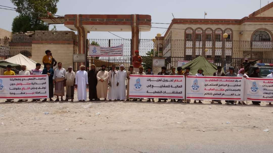 واصل اتحاد المقاولين بمحافظة المهرة لليوم الرابع على التوالي ، إغلاق البنك المركزي بمدينة الغيضة ضمن البرنامج التصعيدي لمطالبة السلطة المحلية صرف مستحقات المقاولين من المشاريع. وأكد المحتجون مواصلة فعالياتهم الميدانية المختلفة، مهددين برفع وتيرة احتجاجاتهم وتوسيعها لتشمل مديريات أخرى من المحافظة في حال استمرار تجاهل السلطة المحلية لمطالبهم وحقوقهم. وحمل اتحاد المقاولين قيادة السلطة المحلية المسؤولية الكاملة عما ستؤول إليه الأمور، لافتاً إلى أن ممارسات السلطة هي ما أجبر المقاولين على التصعيد والضغط لضمان تسليم حقوقهم، بعد أعوام مارسوا فيها كل الطرق النظامية والقانونية. ورفع المحتجون لافتات تدعو كل الجهات الرسمية والشعبية لتفهم مطالبهم المشروعة ورفع الظلم عنهم، نافين أن يكون لهم أهداف تخريبية أو ارتباط بتوجهات سياسية أو حزبية. الجدير بالذكر أن اتحاد المقاولين بمحافظة المهرة دشن اعتصاماً مفتوحاً في ساحة البنك المركزي بمدينة الغيضة منذ يوم الأربعاء الماضي وتوقيفه عن ممارسة نشاطاته. يذكر أن عريضة مطالب المقاولين هي 1.صرف مستحقات المقاولين لمشاريع البرنامج الاستثماري والمجمدة في مكتب المالية منذ العام الماضي 2022م. 2.صرف شيكات المقاولين المستحقة لدى البنك المركزي والمجمدة منذ أربعة سنوات . 3.دفع المديونية السابقة للمقاولين والتي تشمل التوريدات من السيارات والمعدات والمشاريع الانشائية للجهات الأمنية والعسكرية والمدنية. 4.وضع آلية مناسبة لعملية صرف مستحقات المقاولين من المشاريع قيد التنفيذ. 5.عدم تحويل تعزيزات المالية للمشاريع إلى المشتقات النفطية واسترجاع التعزيزات الخاصة بالمقاولين والمحولة لدى المشتقات النفطية.